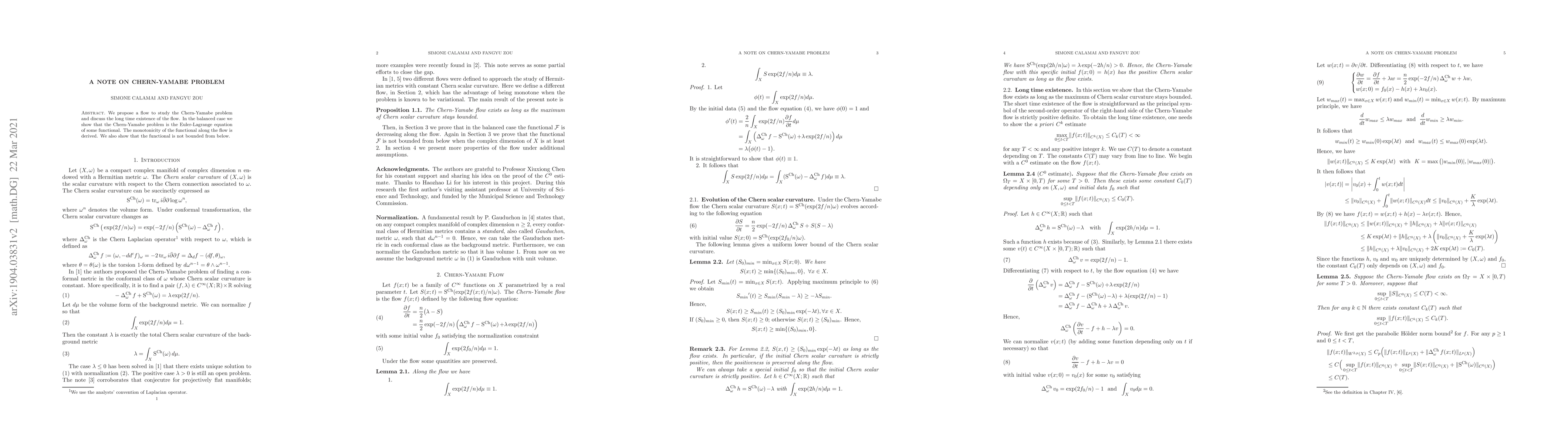 A new flow is proposed to study the Chern-Yamabe problem, showing it is related to an Euler-Lagrange equation with a non-bounded functional that is monotonic along the flow.