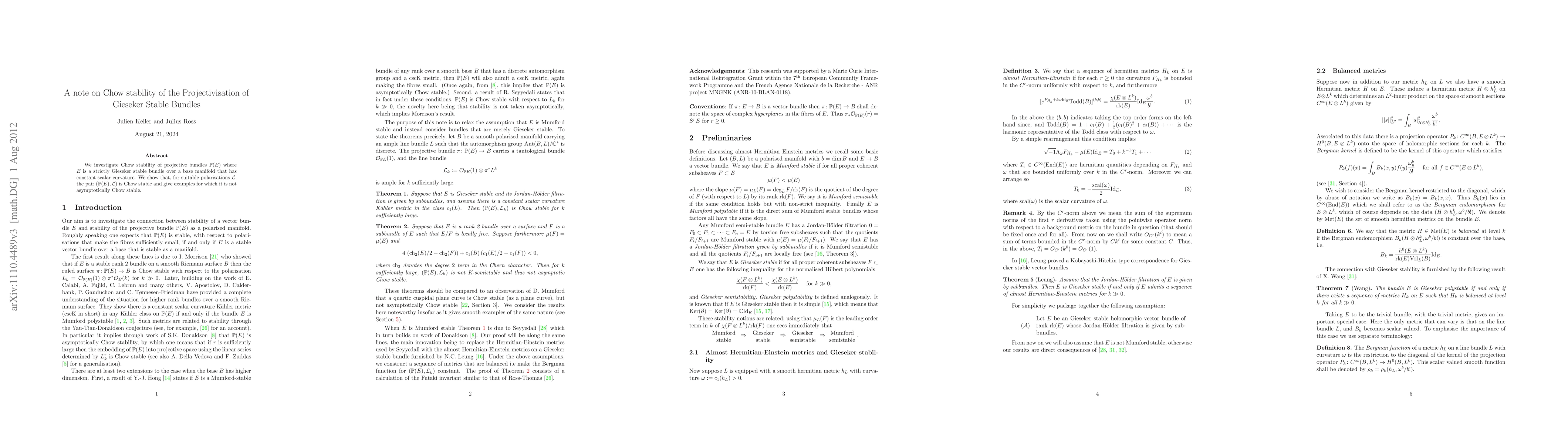 We investigate Chow stability of projective bundles P(E) where E is a strictly Gieseker stable bundle over a base manifold that has constant scalar curvature. We show that, for suitable polarisations L, the pair (P(E),L) is Chow stable and give examples for which it is not asymptotically Chow stable.