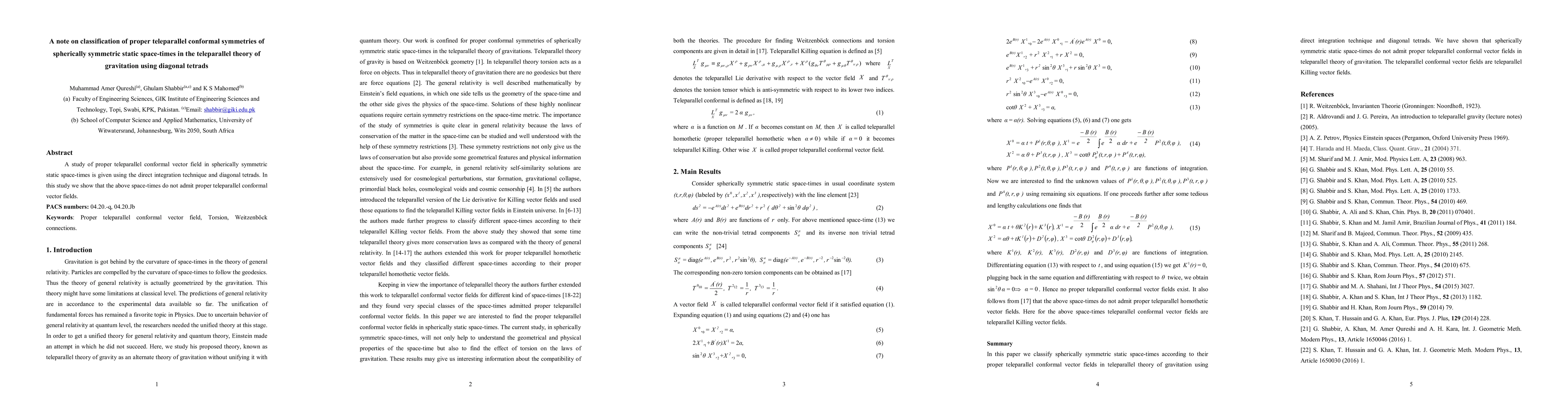 Summary: This paper investigates proper teleparallel conformal symmetries in spherically symmetric static space-times using diagonal tetrads and direct integration techniques. It concludes that such space-times do not support proper teleparallel conformal vector fields.