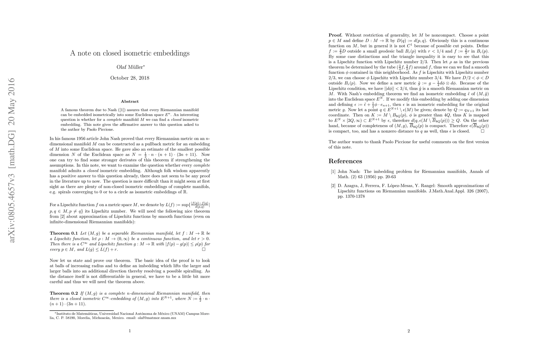 This note extends Nash's embedding theorem to complete manifolds, allowing for a new understanding of isometric embeddings in geometry.