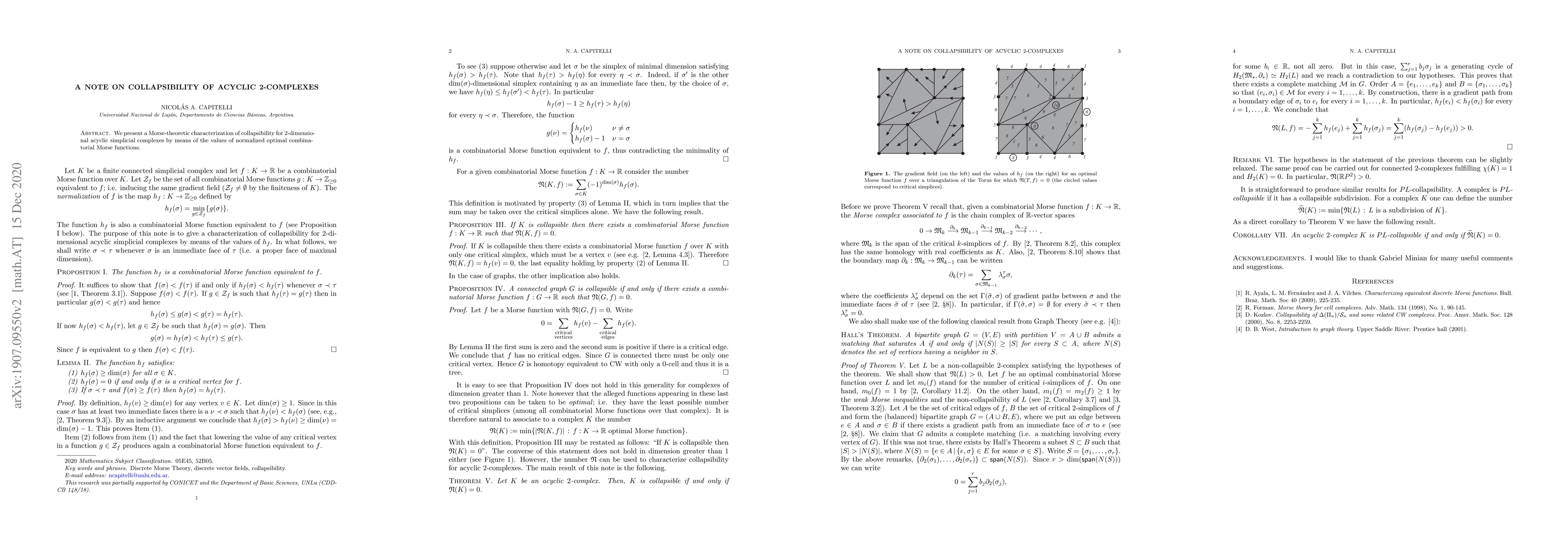Summary: This paper characterizes the collapsibility of 2-dimensional acyclic simplicial complexes using normalized optimal combinatorial Morse functions, providing a Morse-theoretic approach to the problem. The findings offer a new perspective on the structural properties of these complexes.