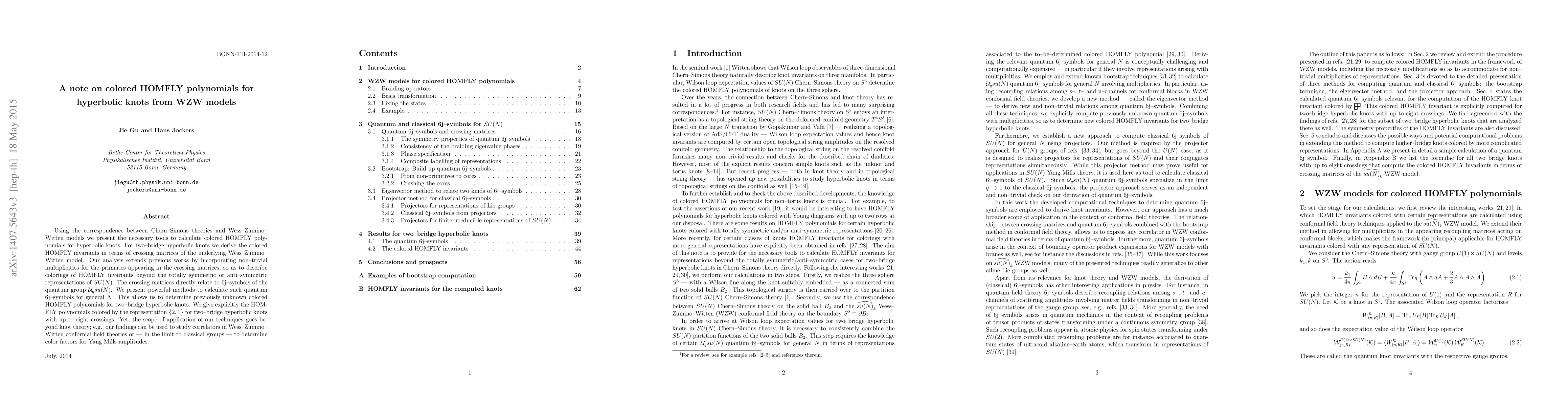 This paper develops methods to calculate colored HOMFLY polynomials for hyperbolic knots via the correspondence between Chern-Simons theories and Wess-Zumino-Witten models, introducing non-trivial multiplicities for the representation theory of SU(N). It determines previously unknown colored HOMFLY polynomials for two-bridge hyperbolic knots and highlights applications beyond knot theory, such as correlators in conformal field theories.