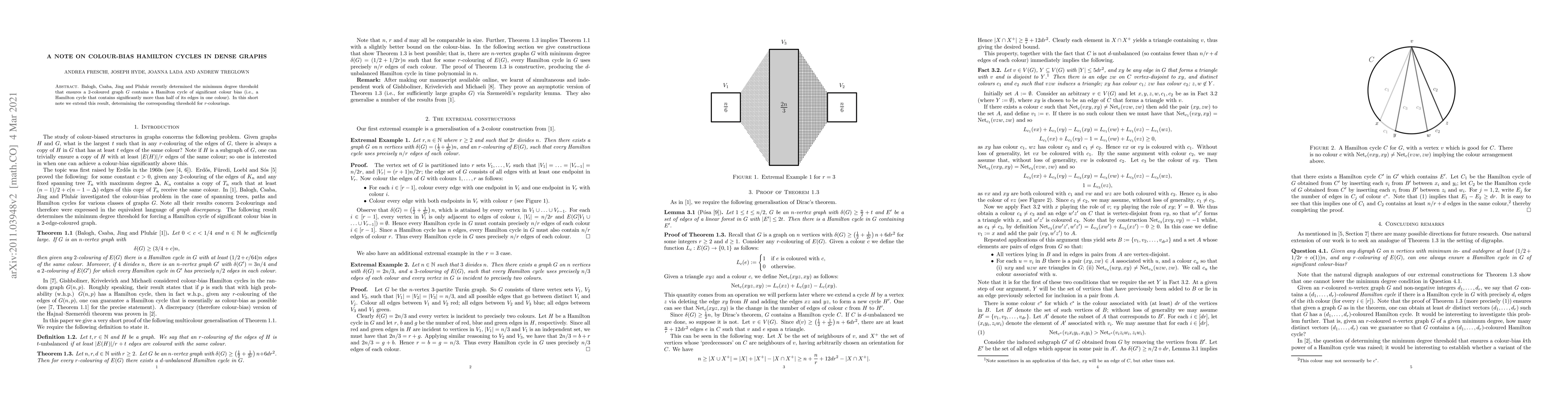 Researchers extended a previous result to determine the minimum degree threshold for r-colorings in dense graphs to contain Hamilton cycles with significant color bias.