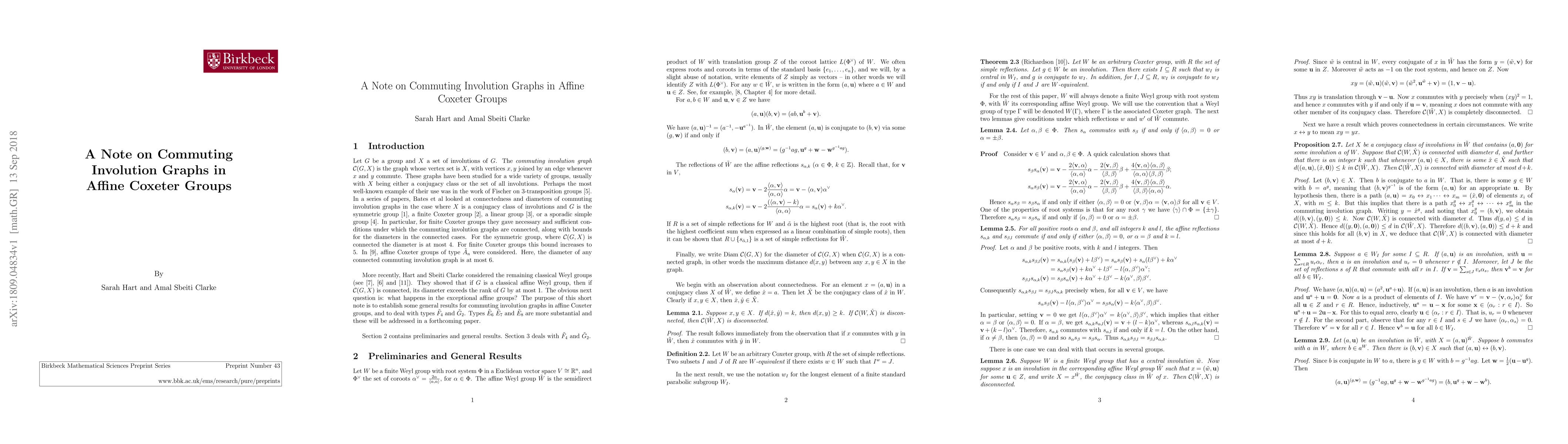 Commuting involution graphs have been studied for finite Coxeter groups and for affine groups of classical type. The purpose of this short note is to establish some general results for commuting involution graphs in affine Coxeter groups, and to deal with types $\tilde F_4$ and $\tilde G_2$. Types $\tilde E_6$ $\tilde E_7$ and $\tilde E_8$ are more substantial and we will address these in a forthcoming paper.