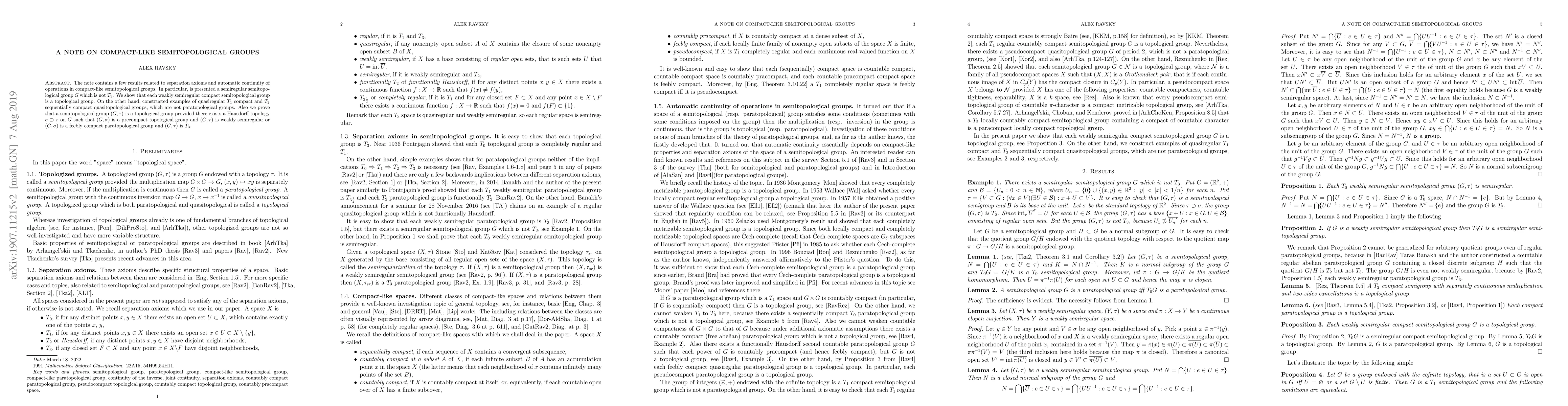 The note contains a few results related to separation axioms and automatic continuity of operations in compact-like semitopological groups. In particular, is presented a semiregular semitopological group $G$ which is not $T_3$. We show that each weakly semiregular compact semitopological group is a topological group. On the other hand, constructed examples of quasiregular $T_1$ compact and $T_2$ sequentially compact quasitopological groups, which are not paratopological groups. Also we prove that a semitopological group $(G,\tau)$ is a topological group provided there exists a Hausdorff topology $\sigma\supset\tau$ on $G$ such that $(G,\sigma)$ is a precompact topological group and $(G,\tau)$ is weakly semiregular or $(G,\sigma)$ is a feebly compact paratopological group and $(G,\tau)$ is $T_3$.