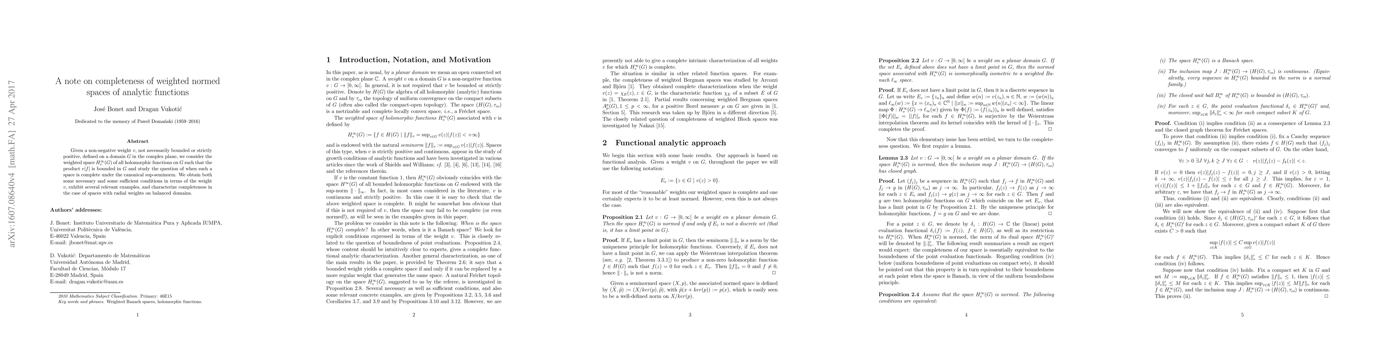 Given a non-negative weight $v$, not necessarily bounded or strictly positive, defined on a domain $G$ in the complex plane, we consider the weighted space $H_v^\infty(G)$ of all holomorphic functions on $G$ such that the product $v|f|$ is bounded in $G$ and study the question of when is such a space complete under the canonical sup-seminorm. We obtain both some necessary and some sufficient conditions in terms of the weight $v$, exhibit several relevant examples, and characterize completeness in the case of spaces with radial weights on balanced domains.