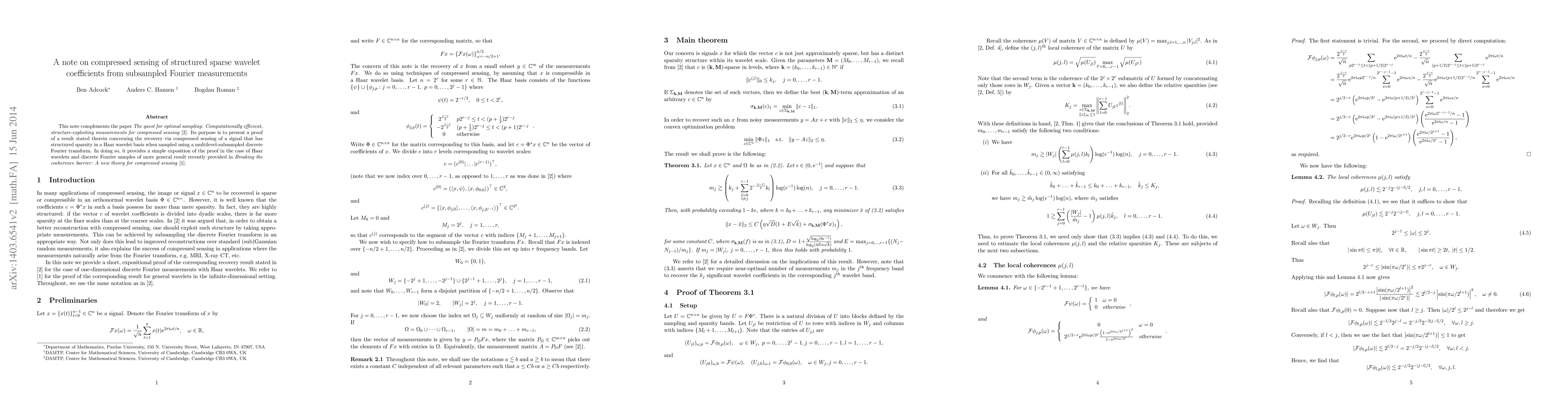 This note complements the paper "The quest for optimal sampling: Computationally efficient, structure-exploiting measurements for compressed sensing" [2]. Its purpose is to present a proof of a result stated therein concerning the recovery via compressed sensing of a signal that has structured sparsity in a Haar wavelet basis when sampled using a multilevel-subsampled discrete Fourier transform. In doing so, it provides a simple exposition of the proof in the case of Haar wavelets and discrete Fourier samples of more general result recently provided in the paper "Breaking the coherence barrier: A new theory for compressed sensing" [1].