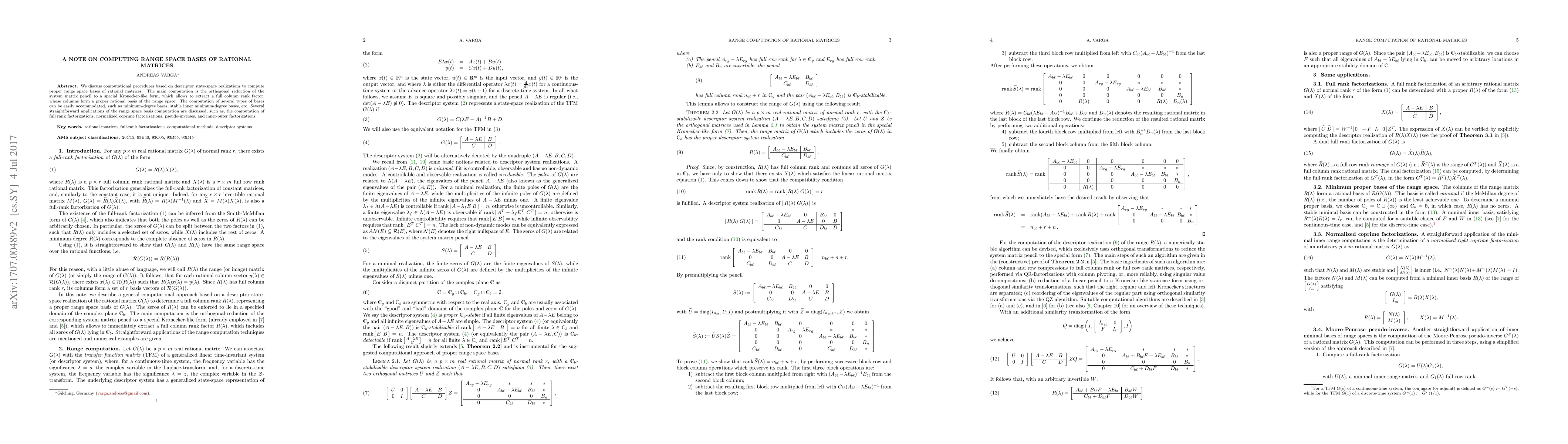 This paper presents computational methods for determining proper range space bases of rational matrices using descriptor state-space realizations. It focuses on orthogonal reduction to a special Kronecker-like form to extract a full column rank factor, facilitating various types of basis computations.