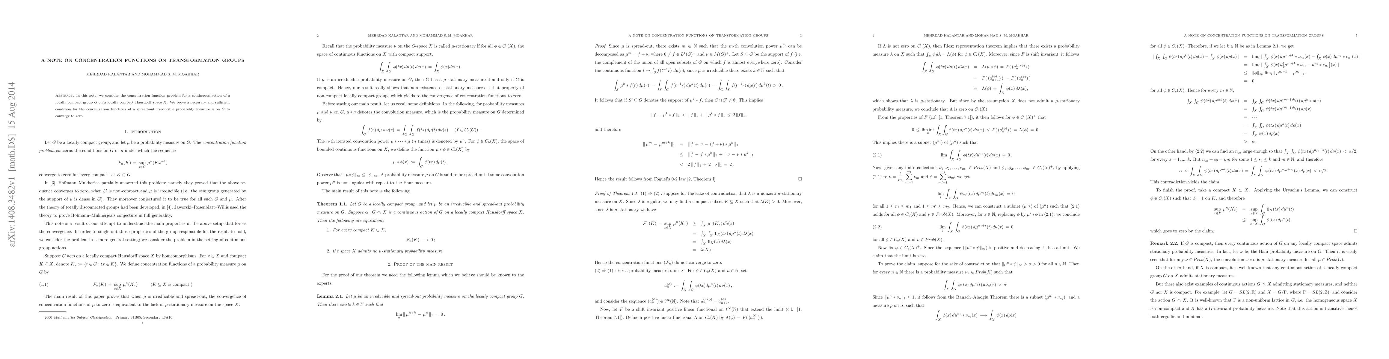Researchers prove a necessary and sufficient condition for concentration functions of irreducible probability measures on transformation groups to converge to zero, shedding light on the behavior of these functions in measure theory and group actions.