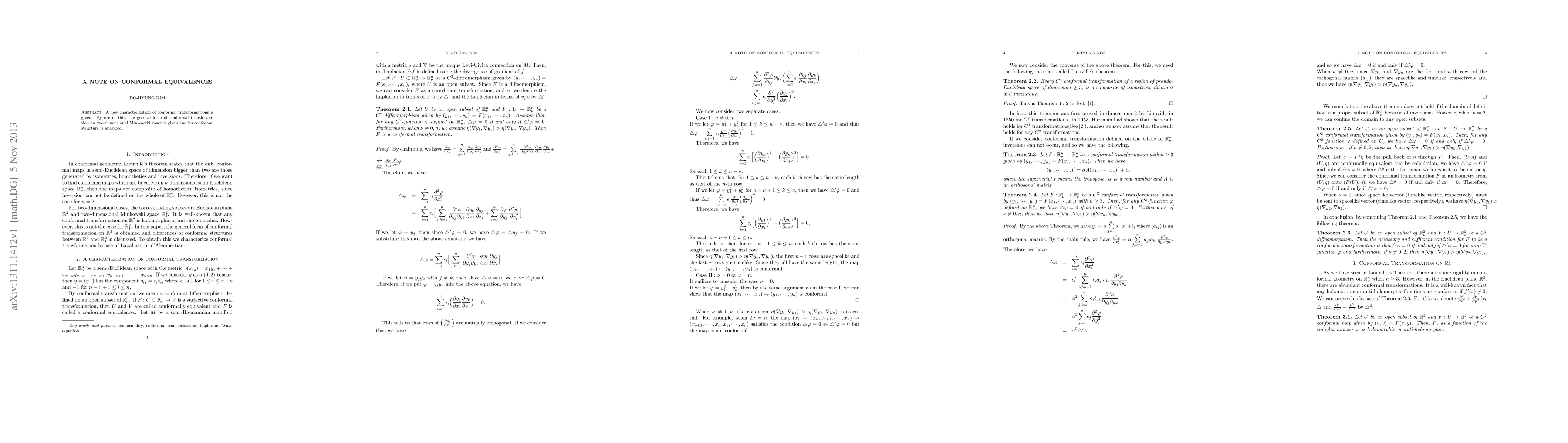 A new characterization of conformal transformations is given. By use of this, the general form of conformal transformation on two-dimensional Minkowski space is given and its conformal structure is analyzed.