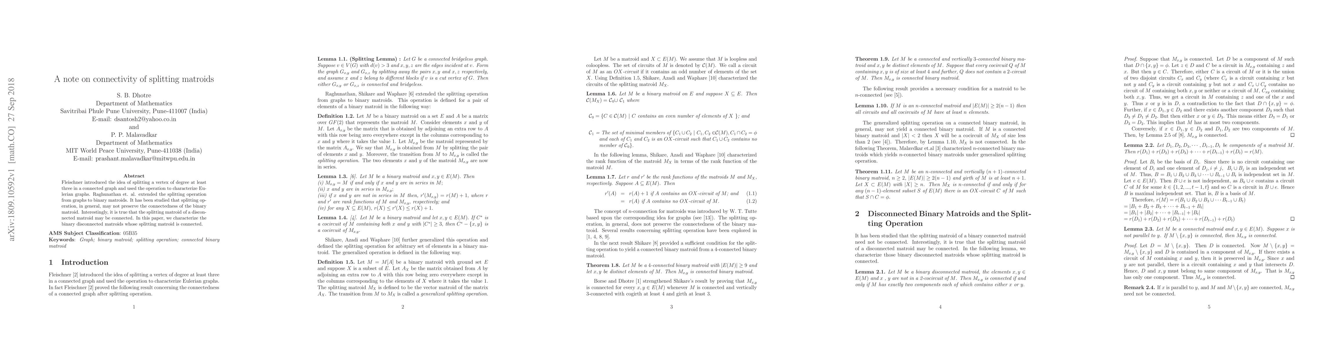 This paper investigates the connectivity properties of splitting matroids, extending the concept from graphs to binary matroids. It characterizes binary disconnected matroids that, when subjected to the splitting operation, result in a connected splitting matroid.
