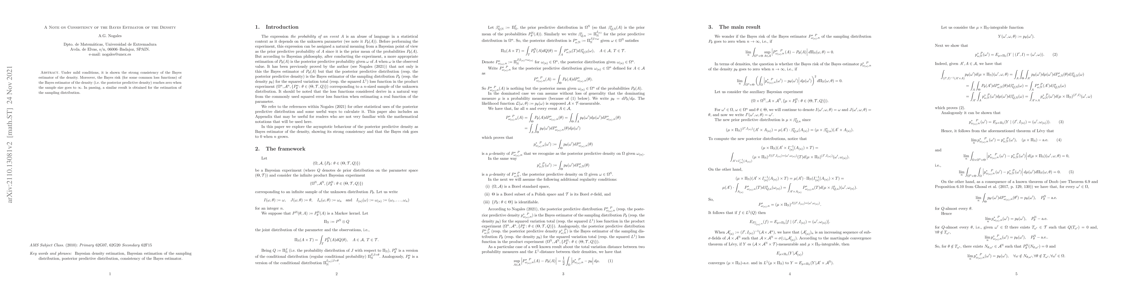 This paper demonstrates the strong consistency of the Bayes estimator for density functions under mild conditions. It also shows that the Bayes risk for common loss functions approaches zero as the sample size increases indefinitely.