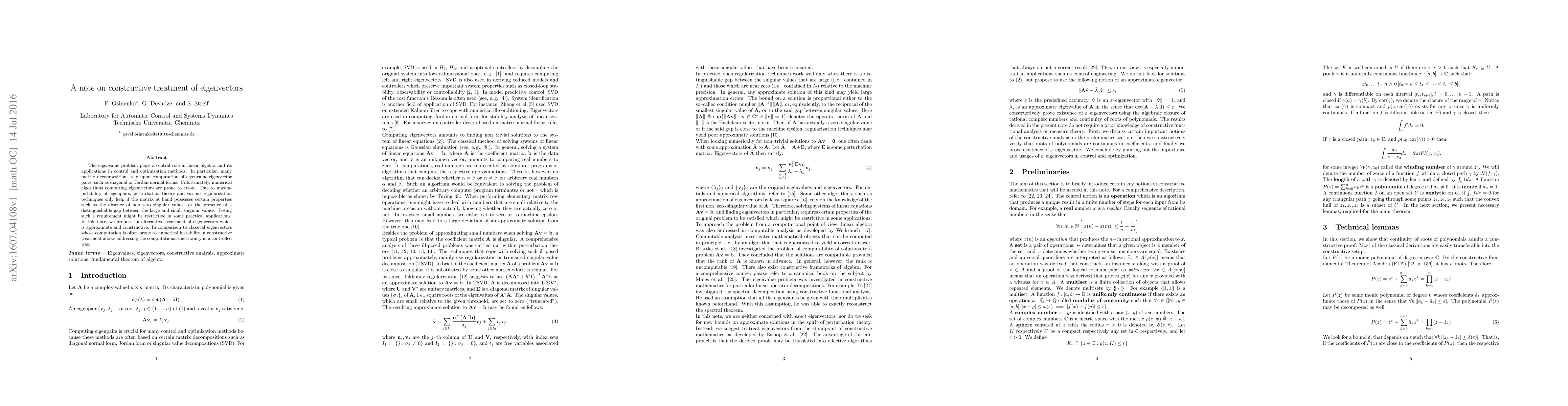 The eigenvalue problem plays a central role in linear algebra and its applications in control and optimization methods. In particular, many matrix decompositions rely upon computation of eigenvalue-eigenvector pairs, such as diagonal or Jordan normal forms. Unfortunately, numerical algorithms computing eigenvectors are prone to errors. Due to uncomputability of eigenpairs, perturbation theory and various regularization techniques only help if the matrix at hand possesses certain properties such as the absence of non-zero singular values, or the presence of a distinguishable gap between the large and small singular values. Posing such a requirement might be restrictive in some practical applications. In this note, we propose an alternative treatment of eigenvectors which is approximate and constructive. In comparison to classical eigenvectors whose computation is often prone to numerical instability, a constructive treatment allows addressing the computational uncertainty in a controlled way.