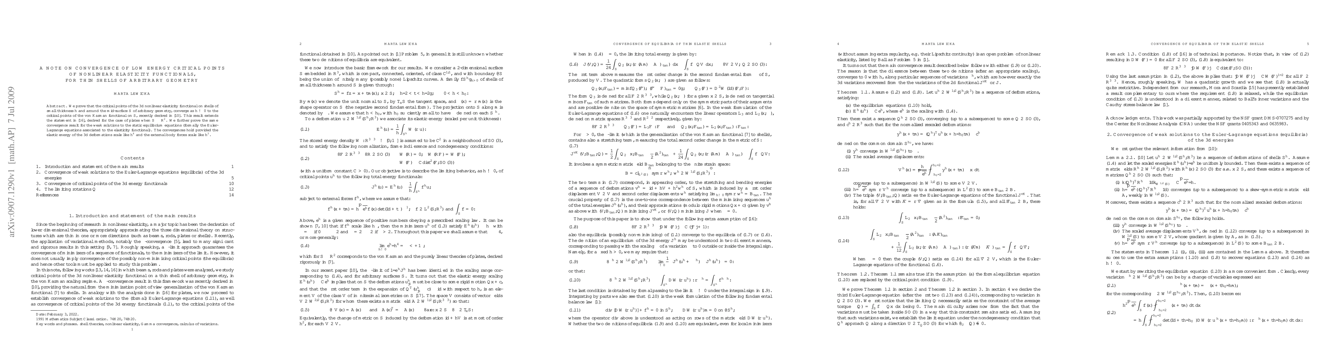 This paper proves the convergence of critical points of 3d nonlinear elasticity functionals on thin shells to those of the von Kármán functional as shell thickness approaches zero. The result extends previous findings for plates and applies to arbitrary shell geometries.