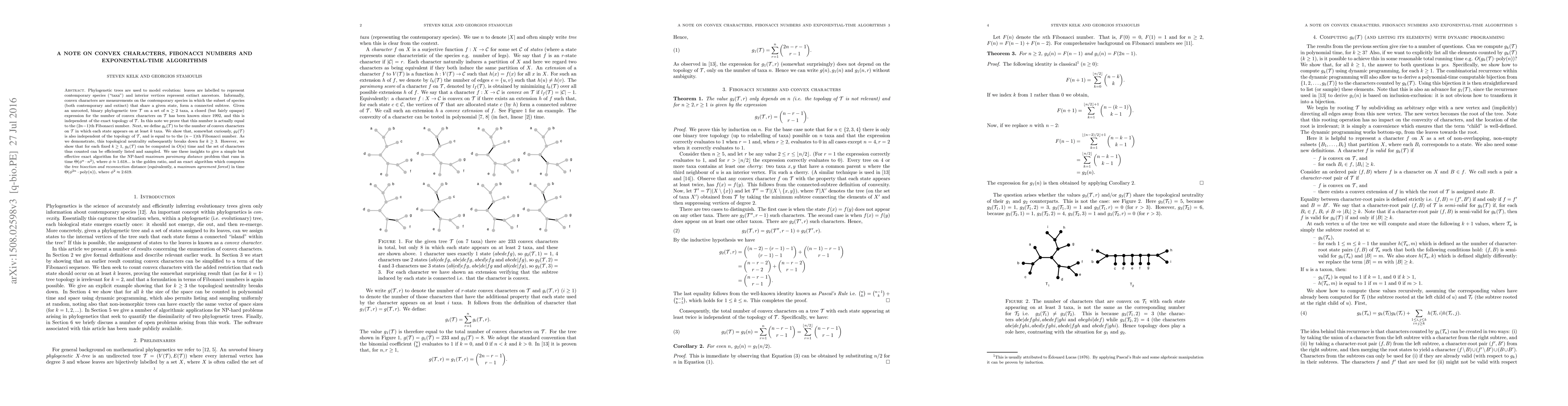 Phylogenetic trees are used to model evolution: leaves are labelled to represent contemporary species ("taxa") and interior vertices represent extinct ancestors. Informally, convex characters are measurements on the contemporary species in which the subset of species (both contemporary and extinct) that share a given state, form a connected subtree. Given an unrooted, binary phylogenetic tree T on a set of n >= 2 taxa, a closed (but fairly opaque) expression for the number of convex characters on T has been known since 1992, and this is independent of the exact topology of T. In this note we prove that this number is actually equal to the (2n-1)th Fibonacci number. Next, we define g_k(T) to be the number of convex characters on T in which each state appears on at least k taxa. We show that, somewhat curiously, g_2(T) is also independent of the topology of T, and is equal to to the (n-1)th Fibonacci number. As we demonstrate, this topological neutrality subsequently breaks down for k >= 3. However, we show that for each fixed k >= 1, g_k(T) can be computed in O(n) time and the set of characters thus counted can be efficiently listed and sampled. We use these insights to give a simple but effective exact algorithm for the NP-hard maximum parsimony distance problem that runs in time $\Theta( \phi^{n} \cdot n^2 )$, where $\phi \approx 1.618...$ is the golden ratio, and an exact algorithm which computes the tree bisection and reconnection distance (equivalently, a maximum agreement forest) in time $\Theta( \phi^{2n}\cdot \text{poly}(n))$, where $\phi^2 \approx 2.619$.
