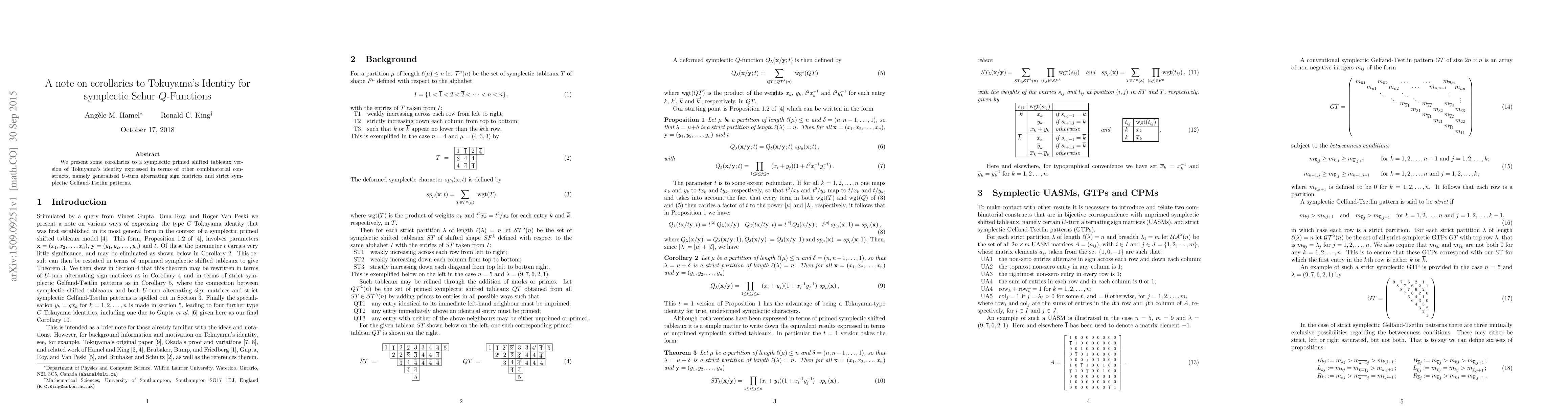 Summary: This paper explores corollaries of Tokuyama's identity for symplectic Schur $Q$-functions, expressed through generalised $U$-turn alternating sign matrices and strict symplectic Gelfand-Tsetlin patterns, using a symplectic primed shifted tableaux version.