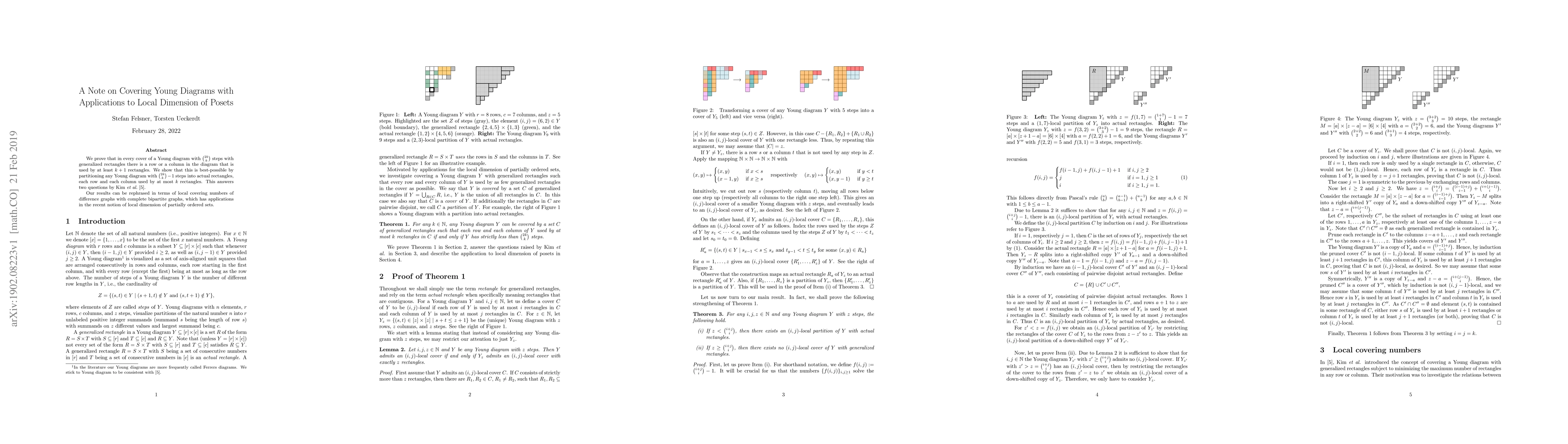 This paper proves that any cover of a Young diagram with $\binom{2k}{k}$ rectangles must include a row or column covered by at least $k+1$ rectangles, demonstrating the optimal bound. It also applies these findings to local dimension concepts in partially ordered sets.