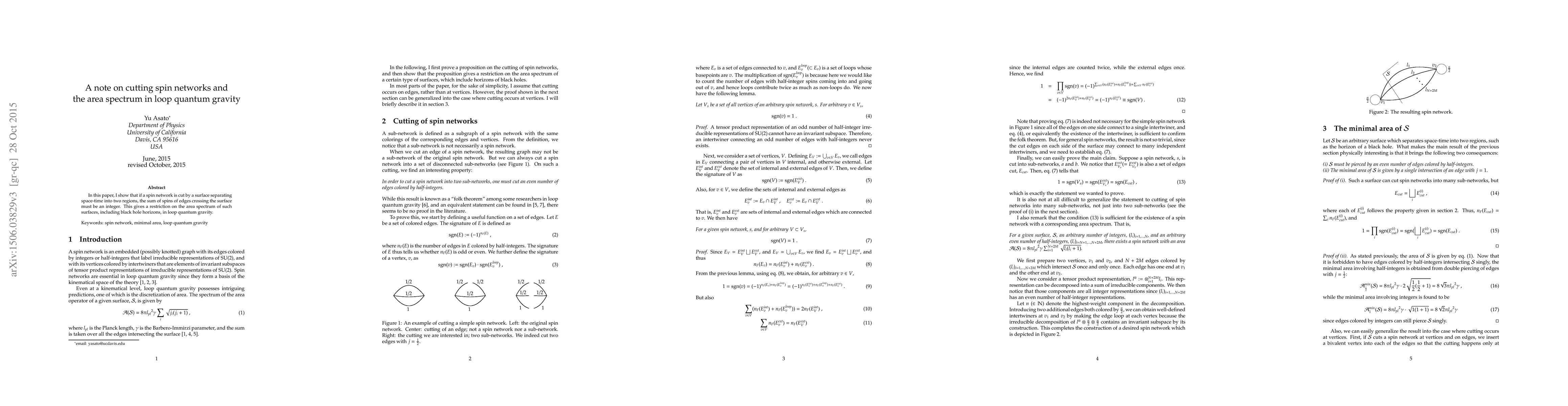 This paper demonstrates that spin networks cut by a separating surface must have integer sums of spins crossing the surface, thereby imposing a restriction on the area spectrum of such surfaces, including black hole horizons, in loop quantum gravity.