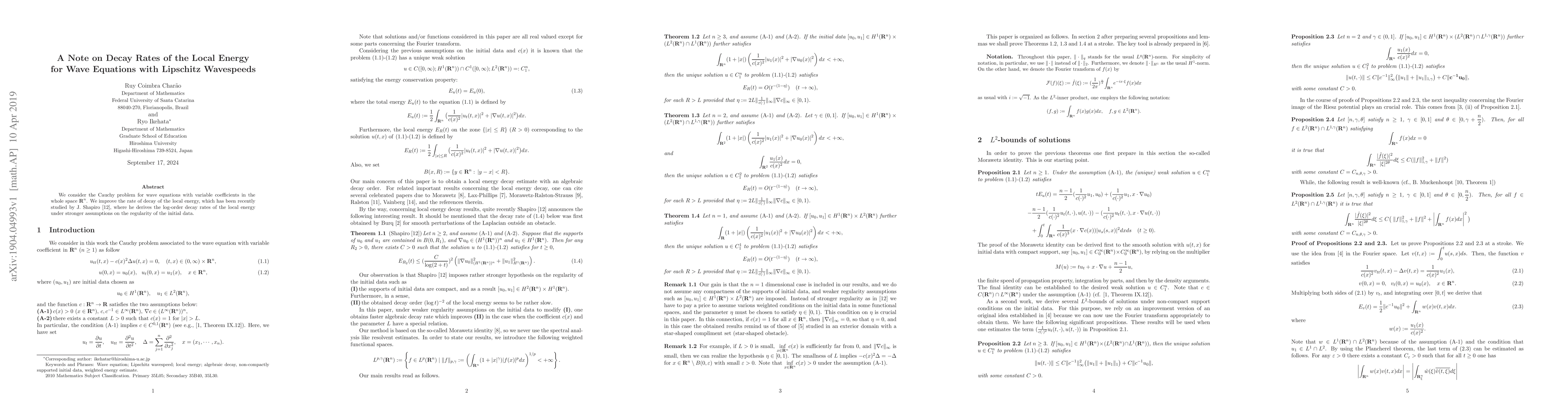 Summary: This paper enhances the decay rate of local energy for wave equations with Lipschitz wavespeeds, improving upon previous results by J. Shapiro that required stronger initial data regularity assumptions. The new findings provide a more general decay rate without such stringent prerequisites.