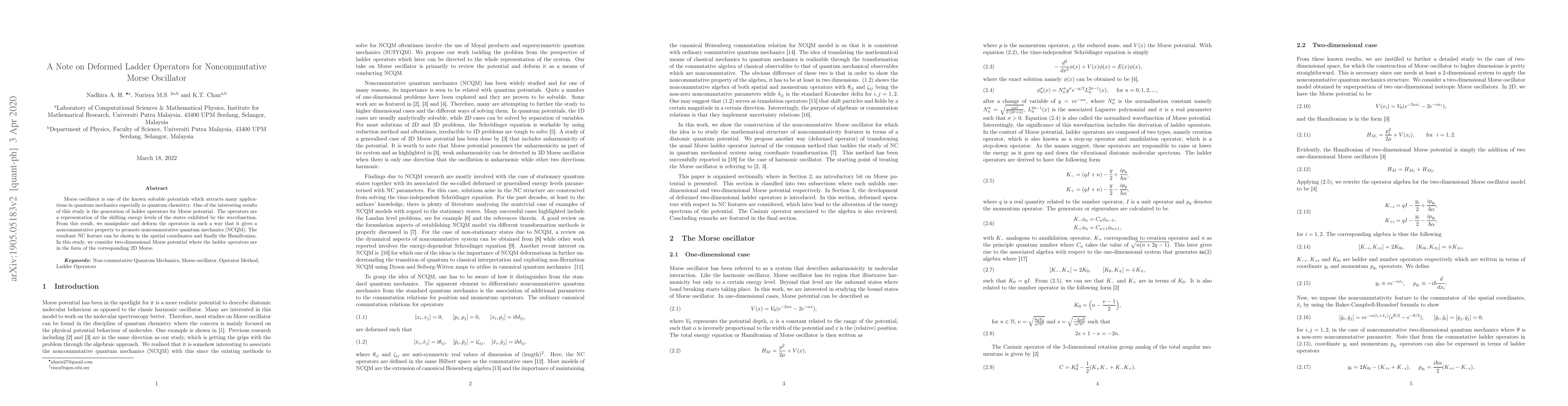 This study introduces deformed ladder operators for a noncommutative Morse oscillator, which promotes noncommutative quantum mechanics, and demonstrates its impact on the Hamiltonian in two-dimensional space.