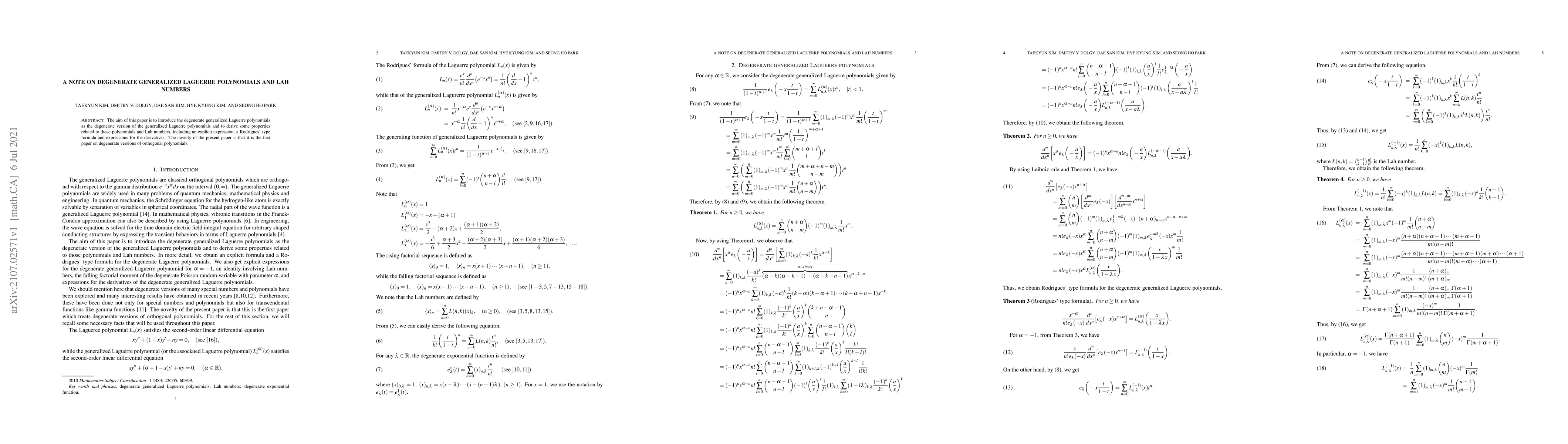 This paper introduces degenerate generalized Laguerre polynomials, the first of their kind in orthogonal polynomials, and derives properties including an explicit expression, a Rodrigues' type formula, and derivative expressions, alongside connections to Lah numbers.