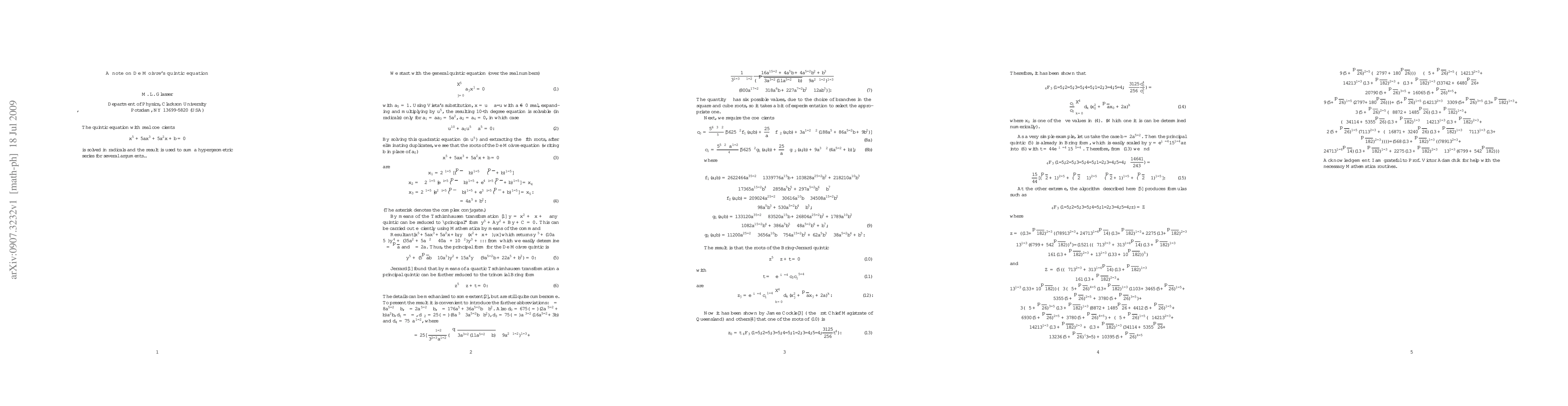 The quintic equation with real coefficients $$x^5+5ax^3+5a^2x+b=0$$ is solved in terms of radicals and the results used to sum a hypergeometric series for several arguments.