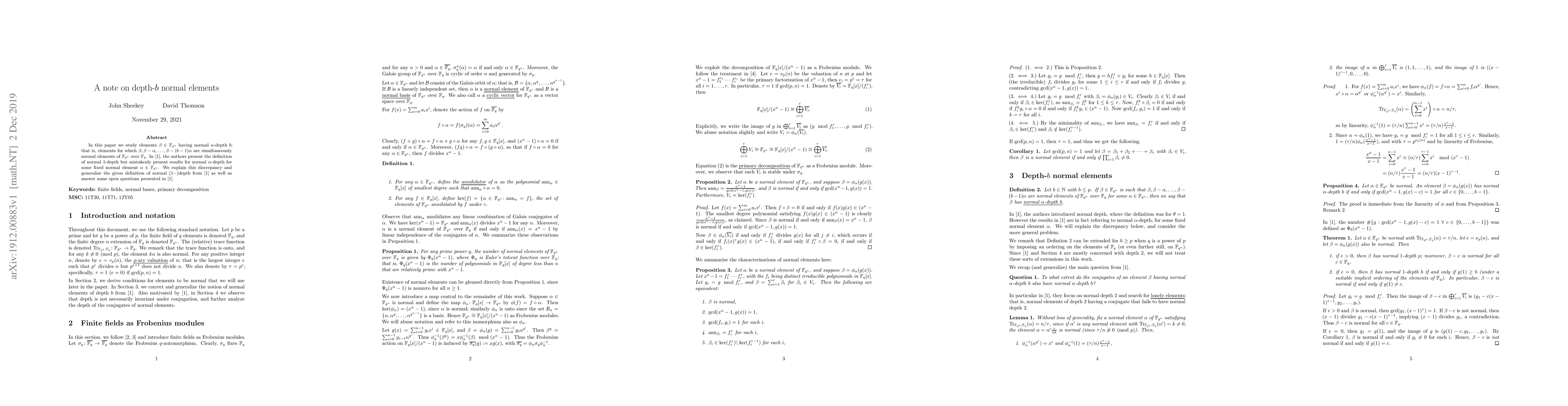 In this paper we study elements $\beta \in \mathbb{F}_{q^n}$ having normal $\alpha$-depth $b$; that is, elements for which $\beta, \beta - \alpha, \ldots, \beta-(b-1)\alpha$ are simultaneously normal elements of $\mathbb{F}_{q^n}$ over $\mathbb{F}_{q}$. In [1], the authors present the definition of normal $1$-depth but mistakenly present results for normal $\alpha$-depth for some fixed normal element $\alpha \in \mathbb{F}_{q^n}$. We explain this discrepancy and generalize the given definition of normal $(1-)$depth from [1] as well as answer some open questions presented in [1].