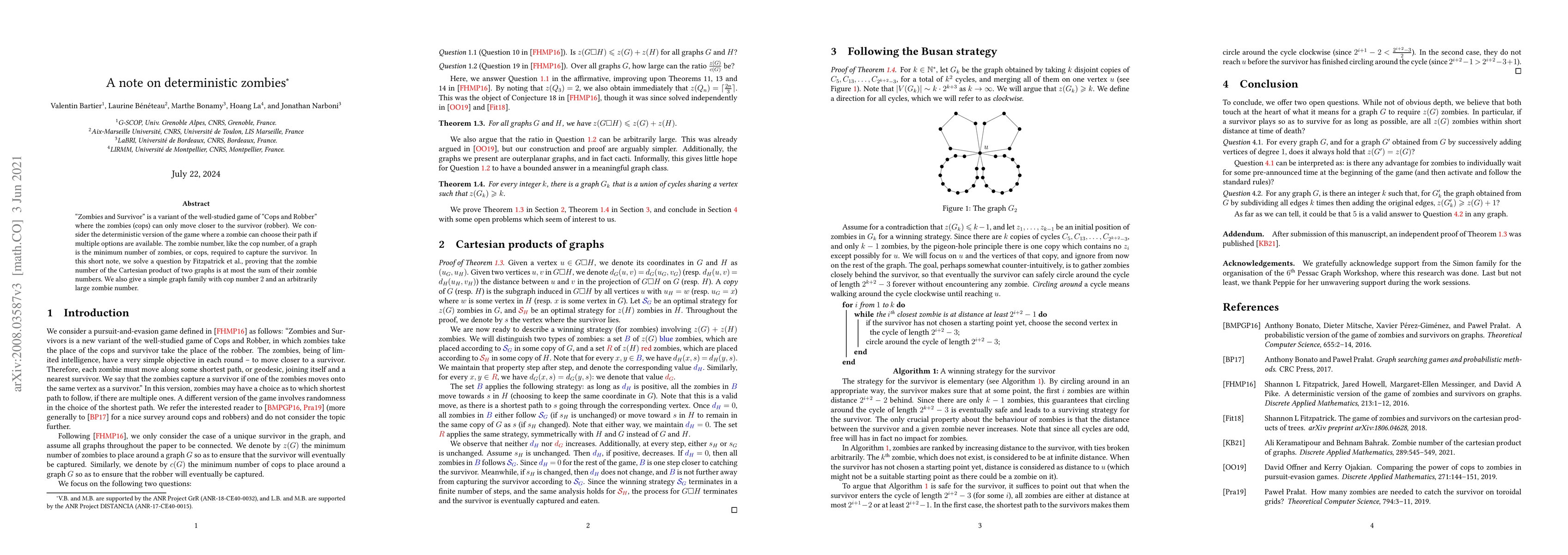Researchers solved a question about deterministic zombies in game theory by proving that the number of zombies required to capture a survivor in a Cartesian product graph is at most the sum of their individual zombie numbers.