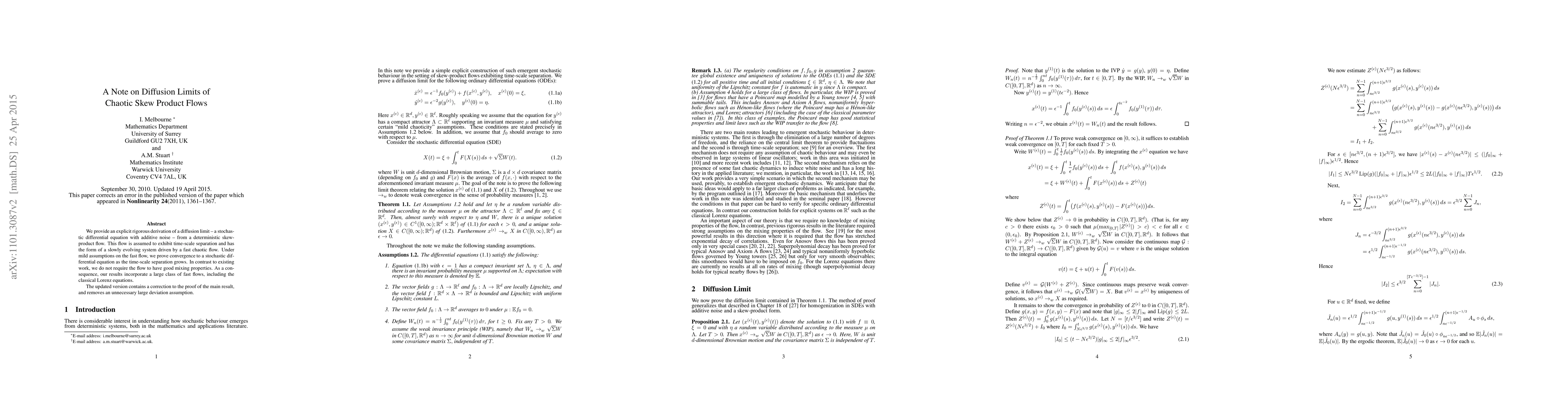 We provide an explicit rigorous derivation of a diffusion limit - a stochastic differential equation with additive noise - from a deterministic skew-product flow. This flow is assumed to exhibit time-scale separation and has the form of a slowly evolving system driven by a fast chaotic flow. Under mild assumptions on the fast flow, we prove convergence to a stochastic differential equation as the time-scale separation grows. In contrast to existing work, we do not require the flow to have good mixing properties. As a consequence, our results incorporate a large class of fast flows, including the classical Lorenz equations.