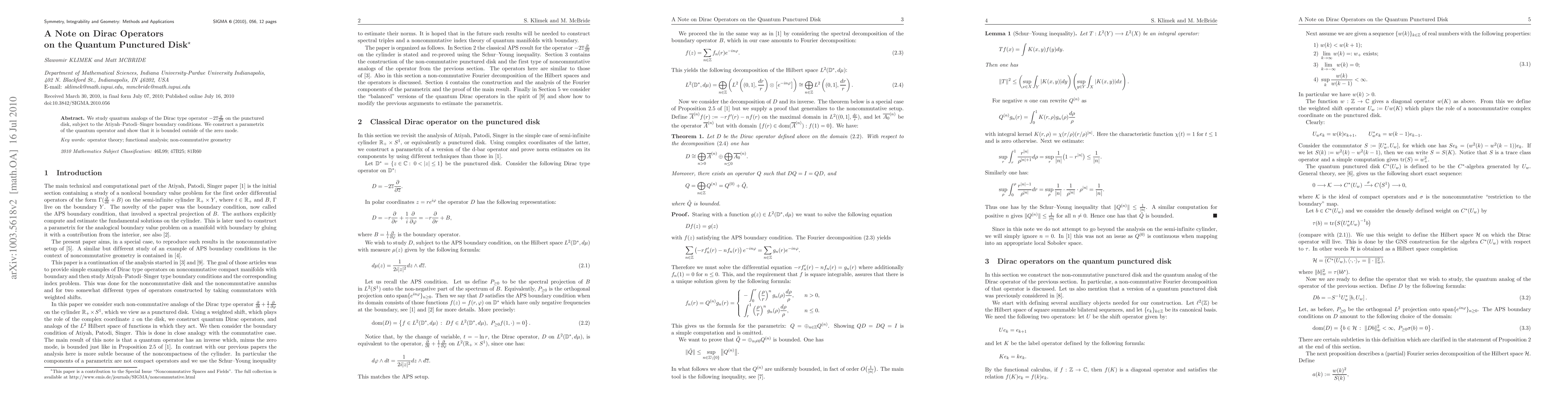 Researchers studied a quantum analog of the Dirac operator on a punctured disk with Atiyah-Patodi-Singer boundary conditions, finding that a parametrix is bounded outside the zero mode.