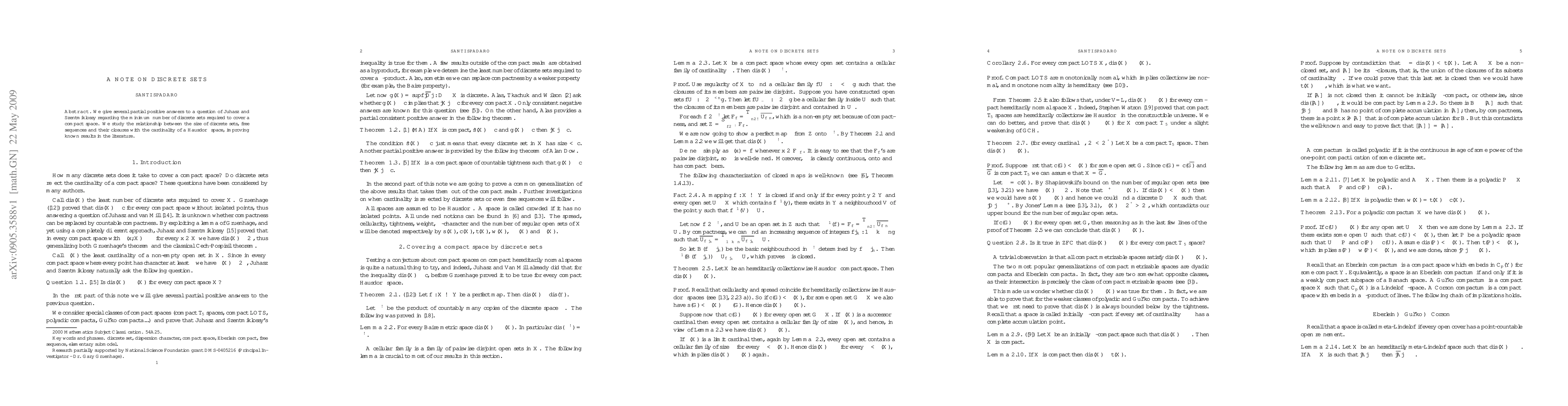 Summary: This paper provides partial positive answers to Juhasz and Szentmiklossy's question on the minimum discrete sets needed to cover a compact space. It explores the connection between discrete sets' size, free sequences, their closures, and the cardinality of Hausdorff spaces, enhancing existing results.