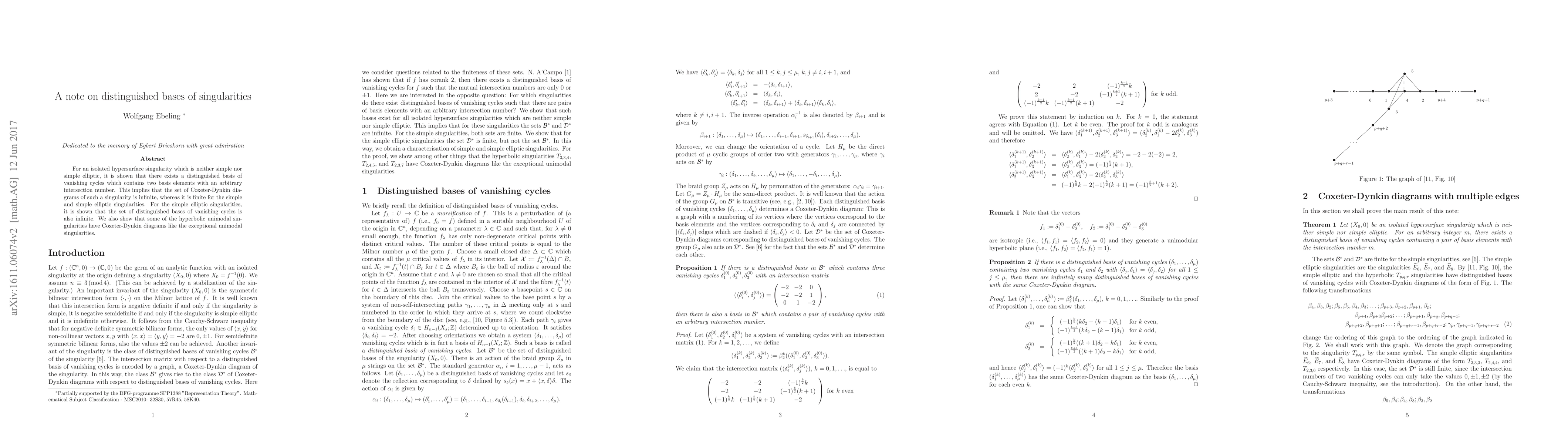 This paper demonstrates the existence of a distinguished basis of vanishing cycles for certain isolated hypersurface singularities, proving that the set of Coxeter-Dynkin diagrams for these singularities is infinite. It also finds that the simple elliptic singularities, despite their simplicity, possess an infinite set of distinguished bases.