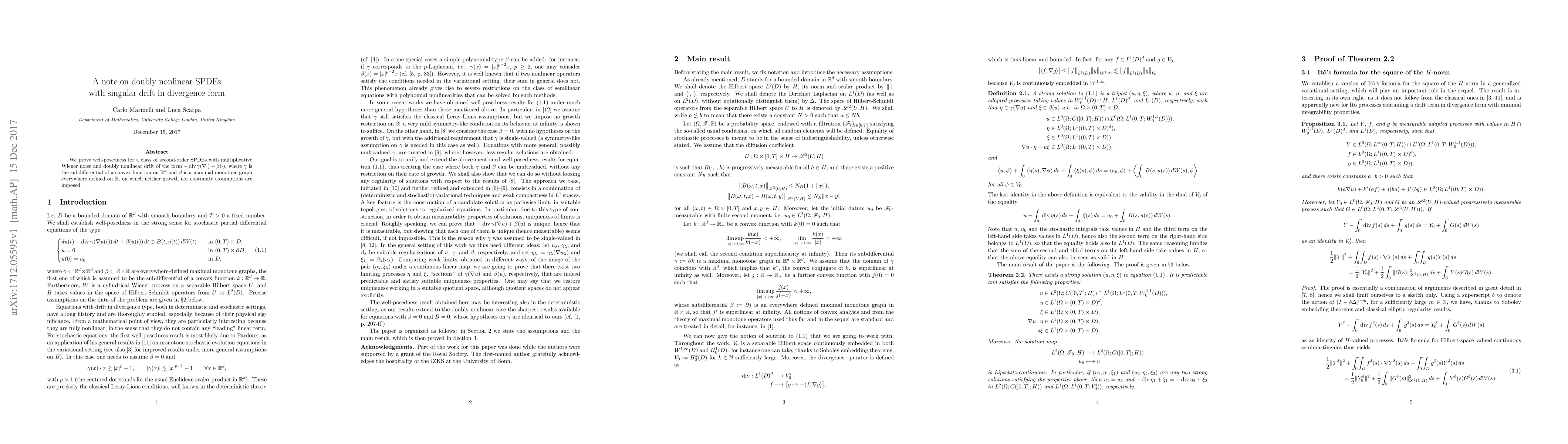 This paper proves well-posedness for a class of second-order SPDEs with nonlinear drift and multiplicative Wiener noise, without imposing growth or continuity assumptions.