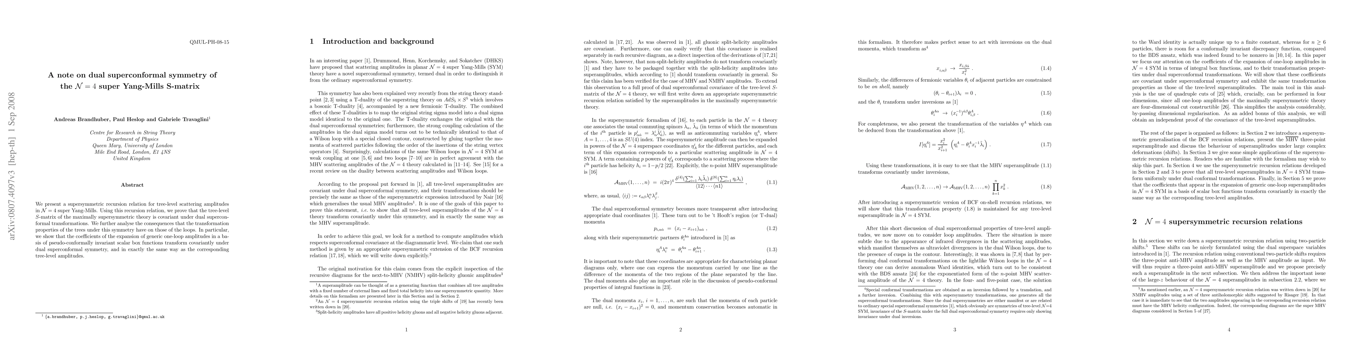 This paper introduces a supersymmetric recursion relation for tree-level scattering amplitudes in N=4 super Yang-Mills theory, demonstrating that the S-matrix is covariant under dual superconformal transformations. It also shows that the transformation properties of tree amplitudes extend covariantly to one-loop amplitudes in a pseudo-conformally invariant basis.