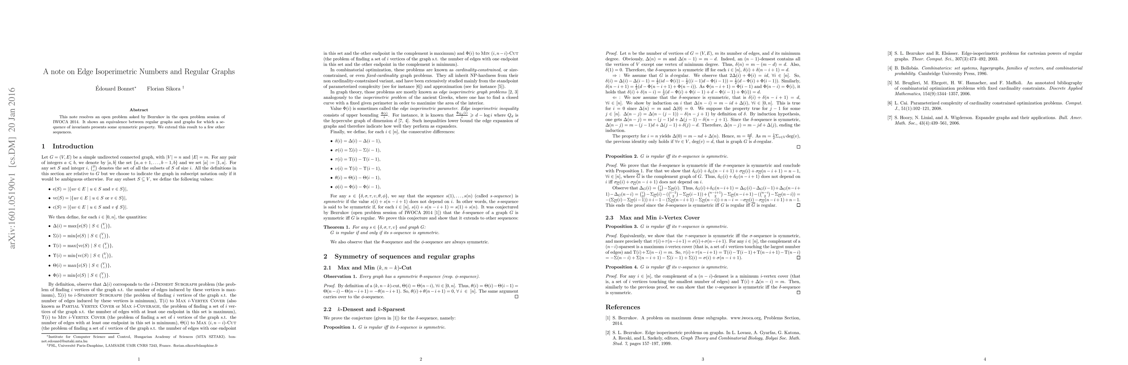 This paper resolves an open problem regarding edge isoperimetric numbers and regular graphs, establishing an equivalence between regular graphs and those with symmetric properties in a sequence of invariants. The findings are extended to additional sequences beyond the initial problem.