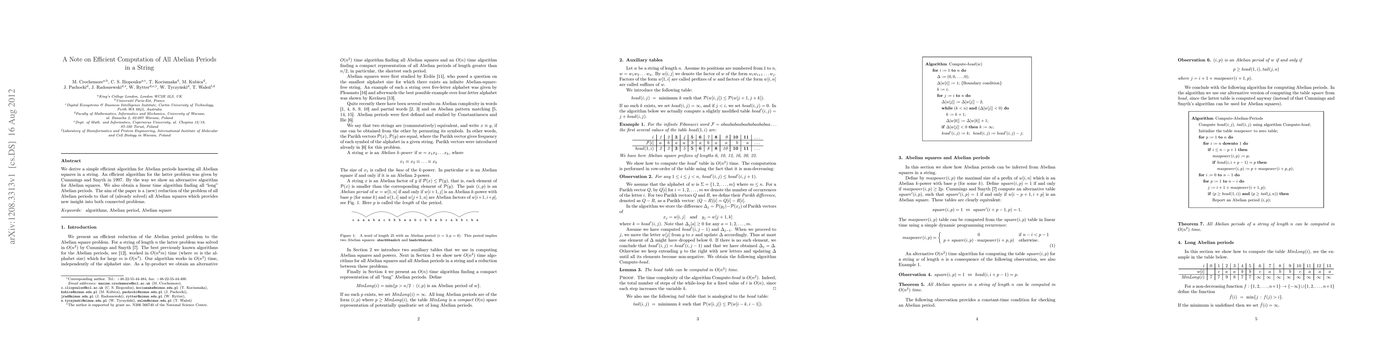We derive a simple efficient algorithm for Abelian periods knowing all Abelian squares in a string. An efficient algorithm for the latter problem was given by Cummings and Smyth in 1997. By the way we show an alternative algorithm for Abelian squares. We also obtain a linear time algorithm finding all `long' Abelian periods. The aim of the paper is a (new) reduction of the problem of all Abelian periods to that of (already solved) all Abelian squares which provides new insight into both connected problems.