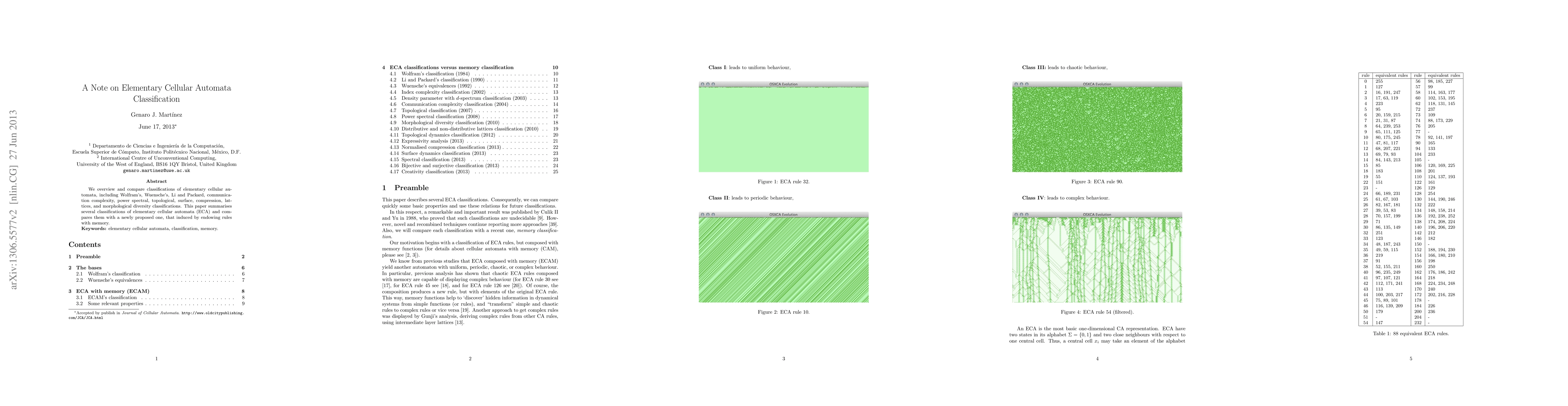 This paper reviews various classifications of elementary cellular automata (ECA), including Wolfram's, Wuensche's, and others, and introduces a new classification based on endowing rules with memory. It provides a comparative analysis of these classifications.