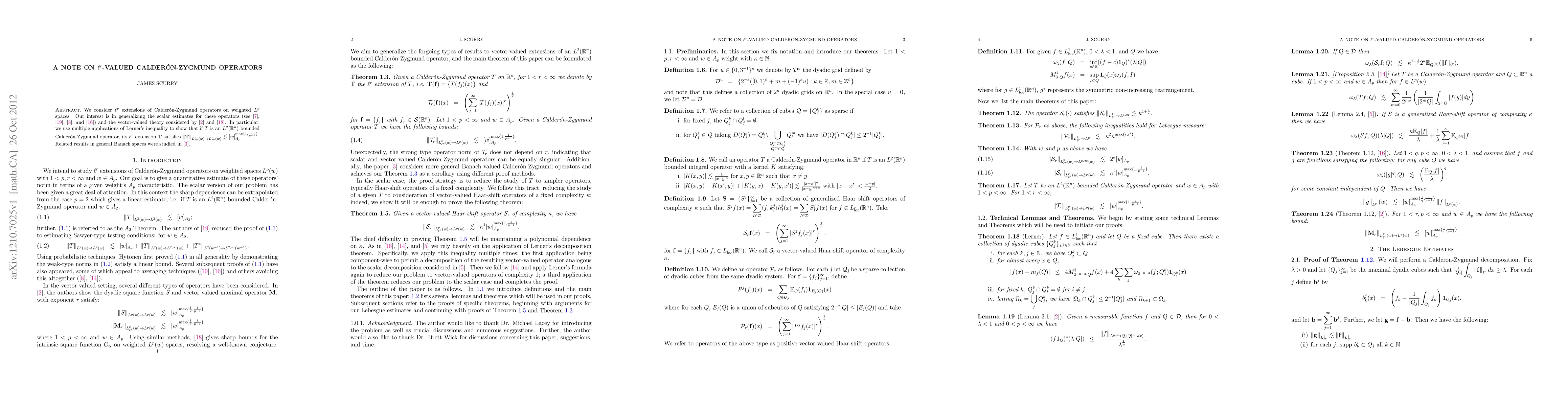 We consider $\ell^r$ extensions of Calderon-Zygmund operators on weighted spaces $L^p(w)$ with $w$ an $A_p$ weight and $1 < p < \infty$. We give quantitative estimates of these operators' norm in terms of a given weight's $A_p$ characteristic. In particular, using a decomposition theorem of A. Lerner, we show that these extensions recover certain scalar estimates. Related results on general Banach spaces have been studied by Hytonen and Hannien.