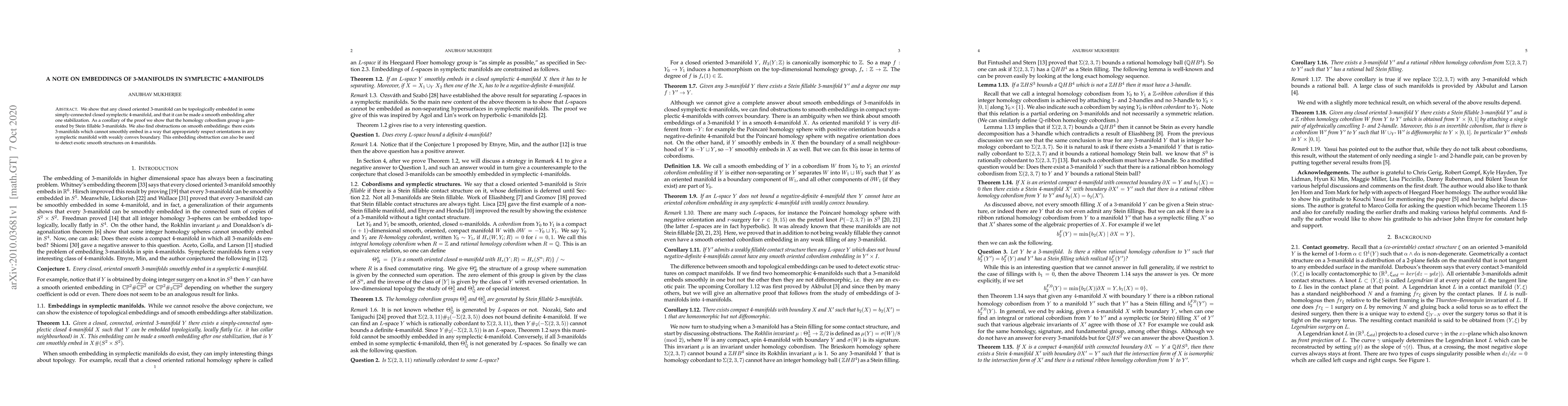 The paper demonstrates that any closed oriented 3-manifold can be topologically embedded in a simply-connected closed symplectic 4-manifold, with the embedding smoothed via stabilization. It also identifies obstructions to smooth embeddings that respect orientations in weakly convex boundary symplectic manifolds, revealing potential exotic smooth structures in 4-manifolds.