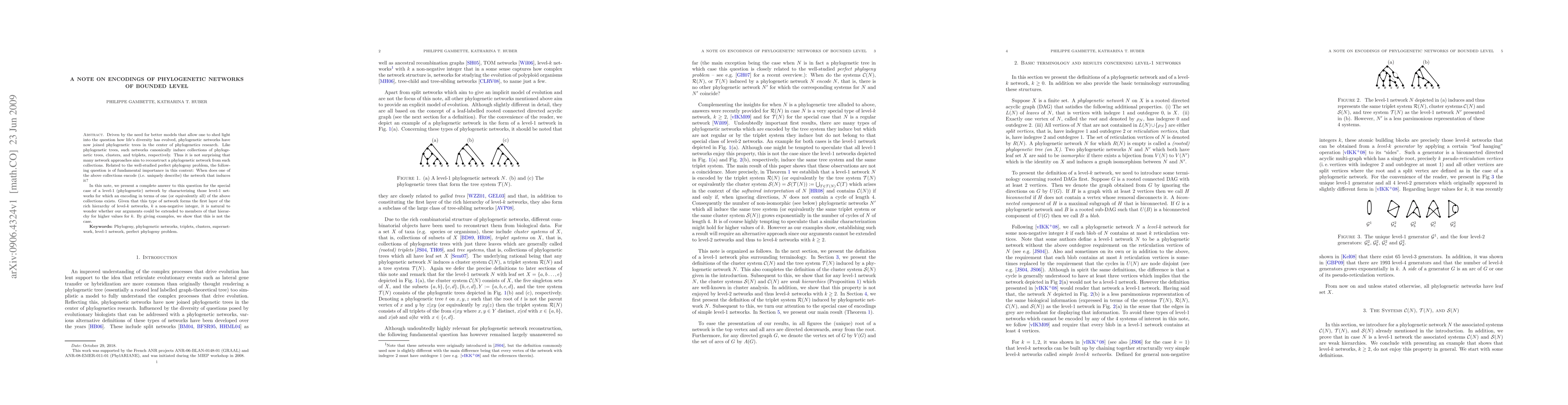 This paper explores the encoding of phylogenetic networks of bounded level, specifically focusing on level-1 networks. It provides a complete answer to when collections of phylogenetic trees, clusters, and triplets can uniquely describe a level-1 network, demonstrating that such encoding does not extend to higher level networks.