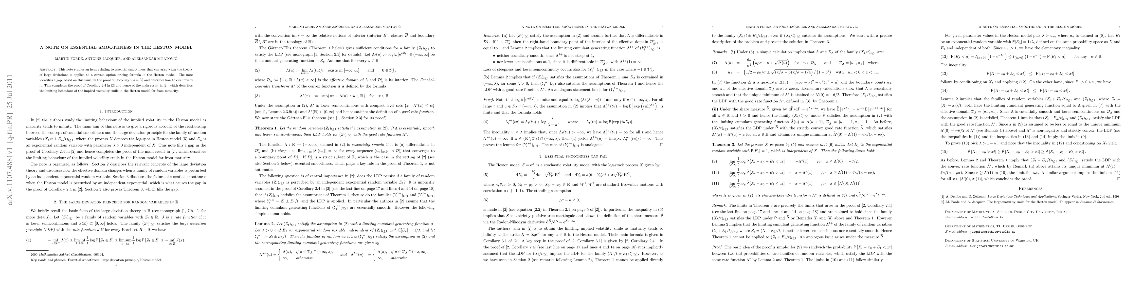This note studies an issue relating to essential smoothness that can arise when the theory of large deviations is applied to a certain option pricing formula in the Heston model. The note identifies a gap, based on this issue, in the proof of Corollary 2.4 in \cite{FordeJacquier10} and describes how to circumvent it. This completes the proof of Corollary 2.4 in \cite{FordeJacquier10} and hence of the main result in \cite{FordeJacquier10}, which describes the limiting behaviour of the implied volatility smile in the Heston model far from maturity.