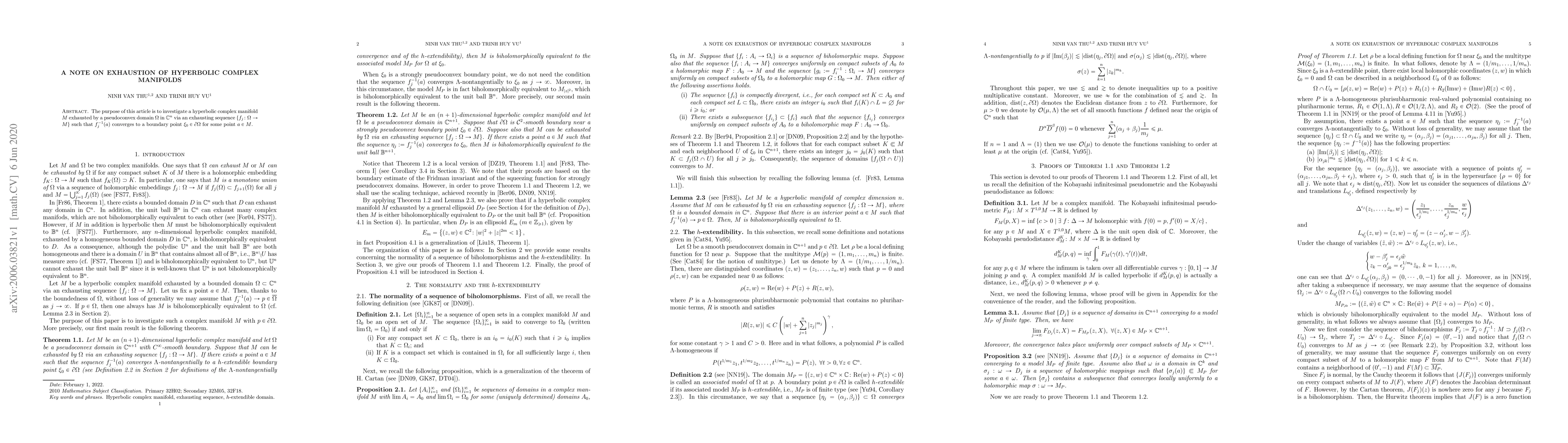 The purpose of this article is to investigate a hyperbolic complex manifold $M$ exhausted by a pseudoconvex domain $\Omega$ in $\mathbb C^n$ via an exhausting sequence $\{f_j\colon \Omega\to M\}$ such that $f_j^{-1}(a)$ converges to a boundary point $\xi_0 \in \partial \Omega$ for some point $a\in M$.