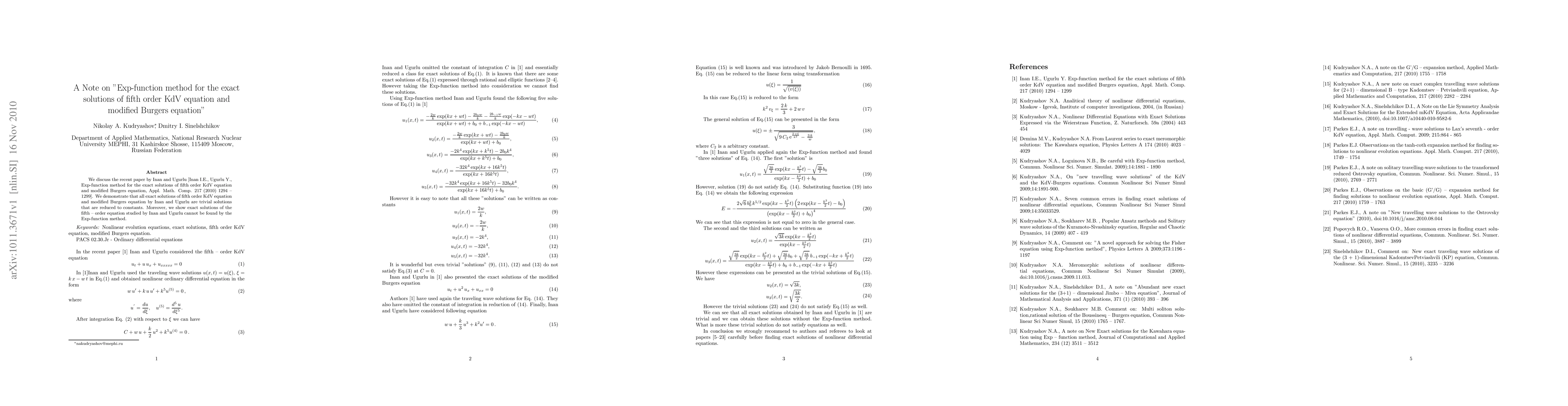 This paper critiques a previous study by Inan and Ugurlu, showing that their claimed exact solutions to the fifth-order KdV equation and modified Burgers equation are trivial and essentially constants. It concludes that the Exp-function method they used is ineffective for finding such solutions.