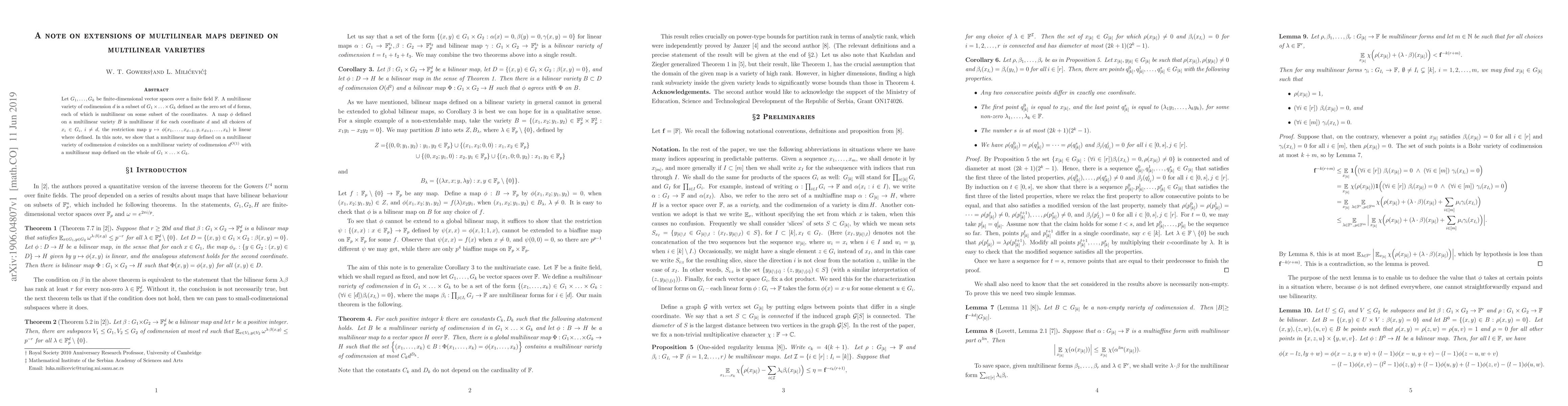 Let $G_1, \dots, G_k$ be finite-dimensional vector spaces over a finite field $\mathbb{F}$. A multilinear variety of codimension $d$ is a subset of $G_1 \times \dots \times G_k$ defined as the zero set of $d$ forms, each of which is multilinear on some subset of the coordinates. A map $\phi$ defined on a multilinear variety $B$ is multilinear if for each coordinate $d$ and all choices of $x_i \in G_i$, $i\not=d$, the restriction map $y \mapsto \phi(x_1, \dots, x_{d-1}, y, x_{d+1}, \dots, x_k)$ is linear where defined. In this note, we show that a multilinear map defined on a multilinear variety of codimension $d$ coincides on a multilinear variety of codimension $d^{O(1)}$ with a multilinear map defined on the whole of $G_1\times\dots\times G_k$.