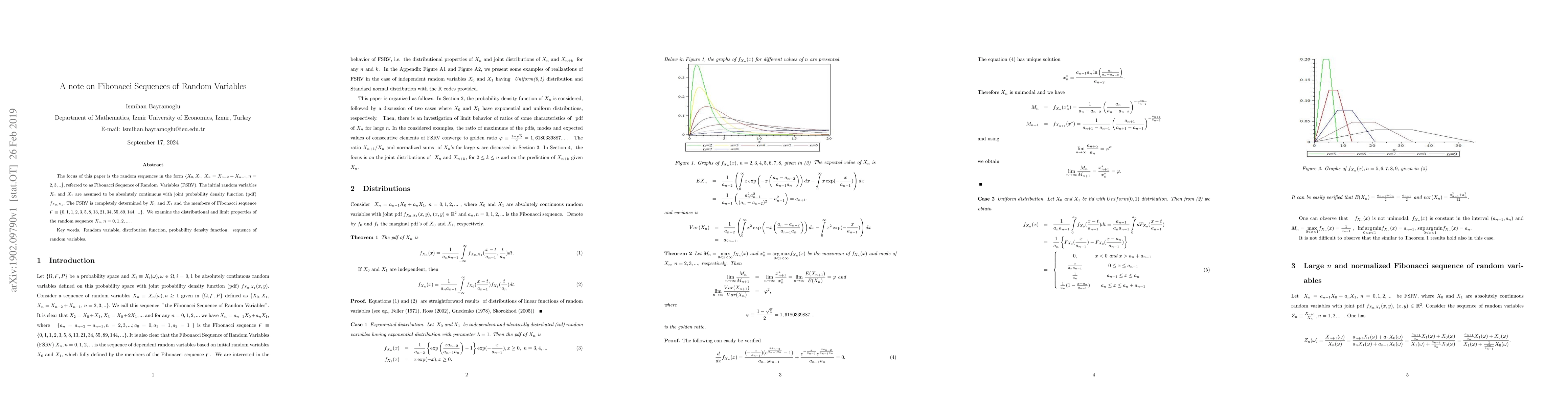 This paper investigates the distributional and limit properties of Fibonacci Random Sequences (FRS), defined by the recurrence relation $X_{n}=X_{n-2}+X_{n-1}$ for $n \geq 2$, starting from initial random variables $X_{0}$ and $X_{1}$ with a joint probability density function. The study focuses on how the sequence evolves and its asymptotic behavior.