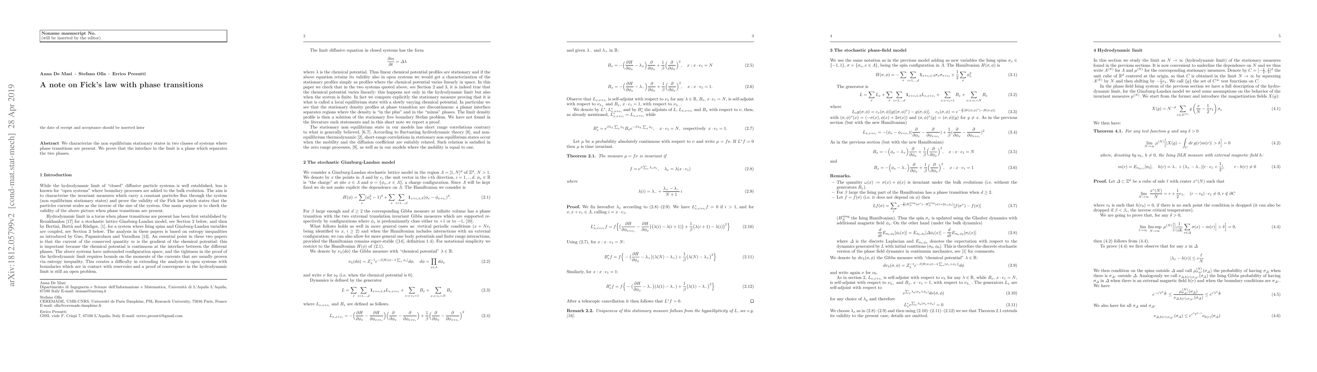 We characterize the non equilibrium stationary states in two classes of systems where phase transitions are present. We prove that the interface in the limit is a plane which separates the two phases.