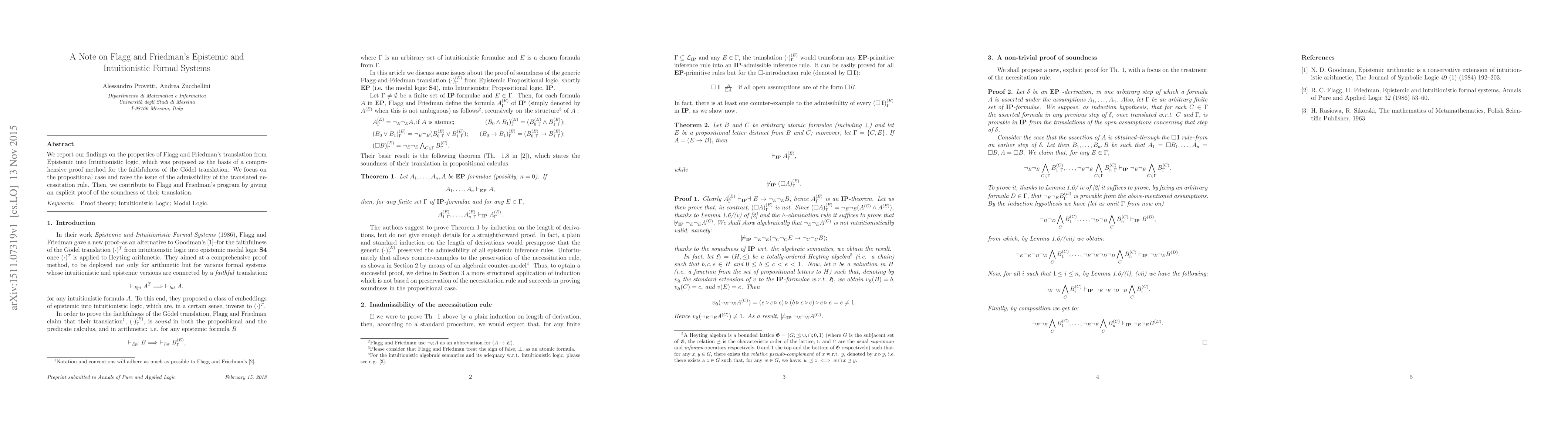 We report our findings on the properties of Flagg and Friedman's translation from Epistemic into Intuitionistic logic, which was proposed as the basis of a comprehensive proof method for the faithfulness of the Goodel translation. We focus on the propositional case and raise the issue of the admissibility of the translated necessitation rule. Then, we contribute to Flagg and Friedman's program by giving an explicit proof of the soundness of their translation.