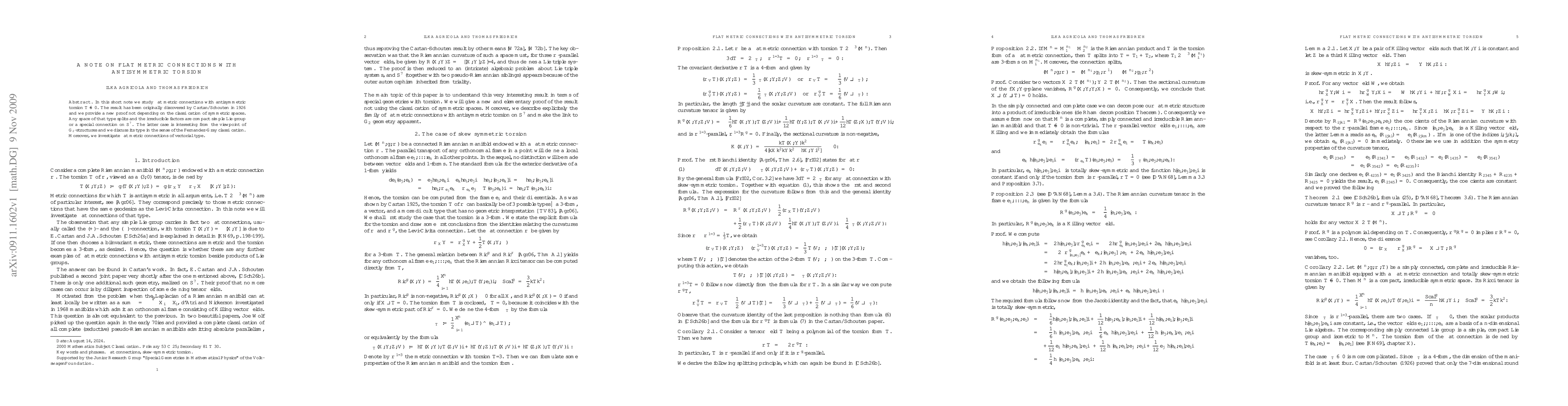 This paper studies flat metric connections with antisymmetric torsion, revealing that such spaces split into compact simple Lie groups or special connections on $S^7$, with implications for $G_2$-structures.