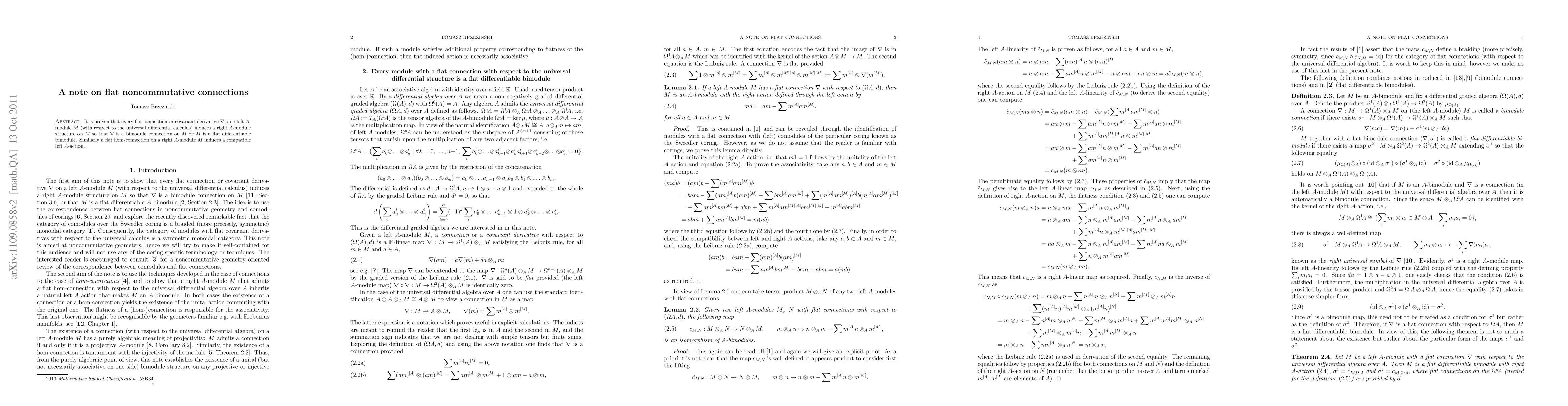 It is proven that every flat connection or covariant derivative $\nabla$ on a left $A$-module $M$ (with respect to the universal differential calculus) induces a right $A$-module structure on $M$ so that $\nabla$ is a bimodule connection on $M$ or $M$ is a flat differentiable bimodule. Similarly a flat hom-connection on a right $A$-module $M$ induces a compatible left $A$-action.