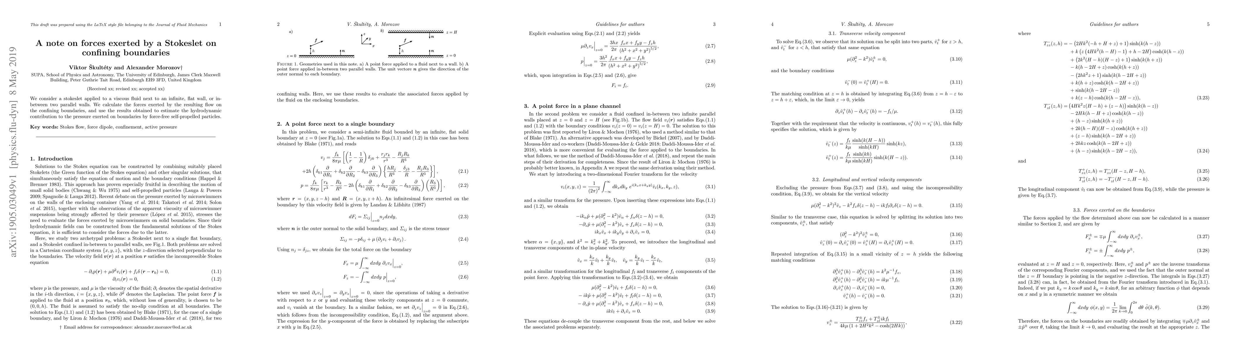 This paper calculates the forces exerted by a Stokeslet in a viscous fluid near an infinite wall or between two parallel walls, and uses these results to estimate the hydrodynamic pressure on boundaries due to force-free self-propelled particles.